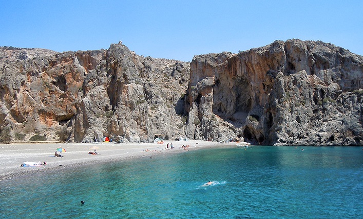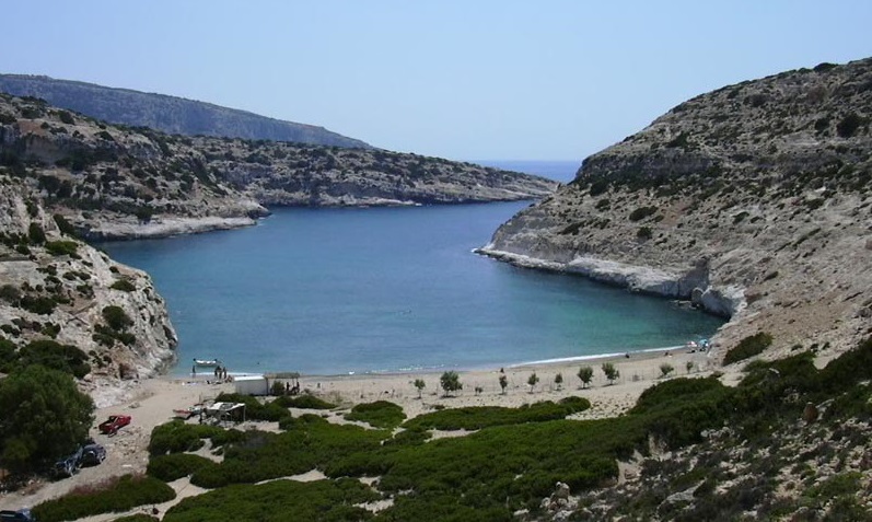 een strand dat te bereiken is na een korte wandeling van Matala uit. Vooral gekend onder de nudisten