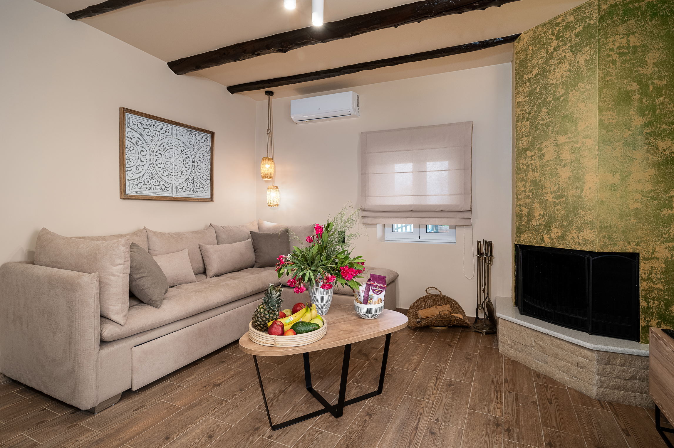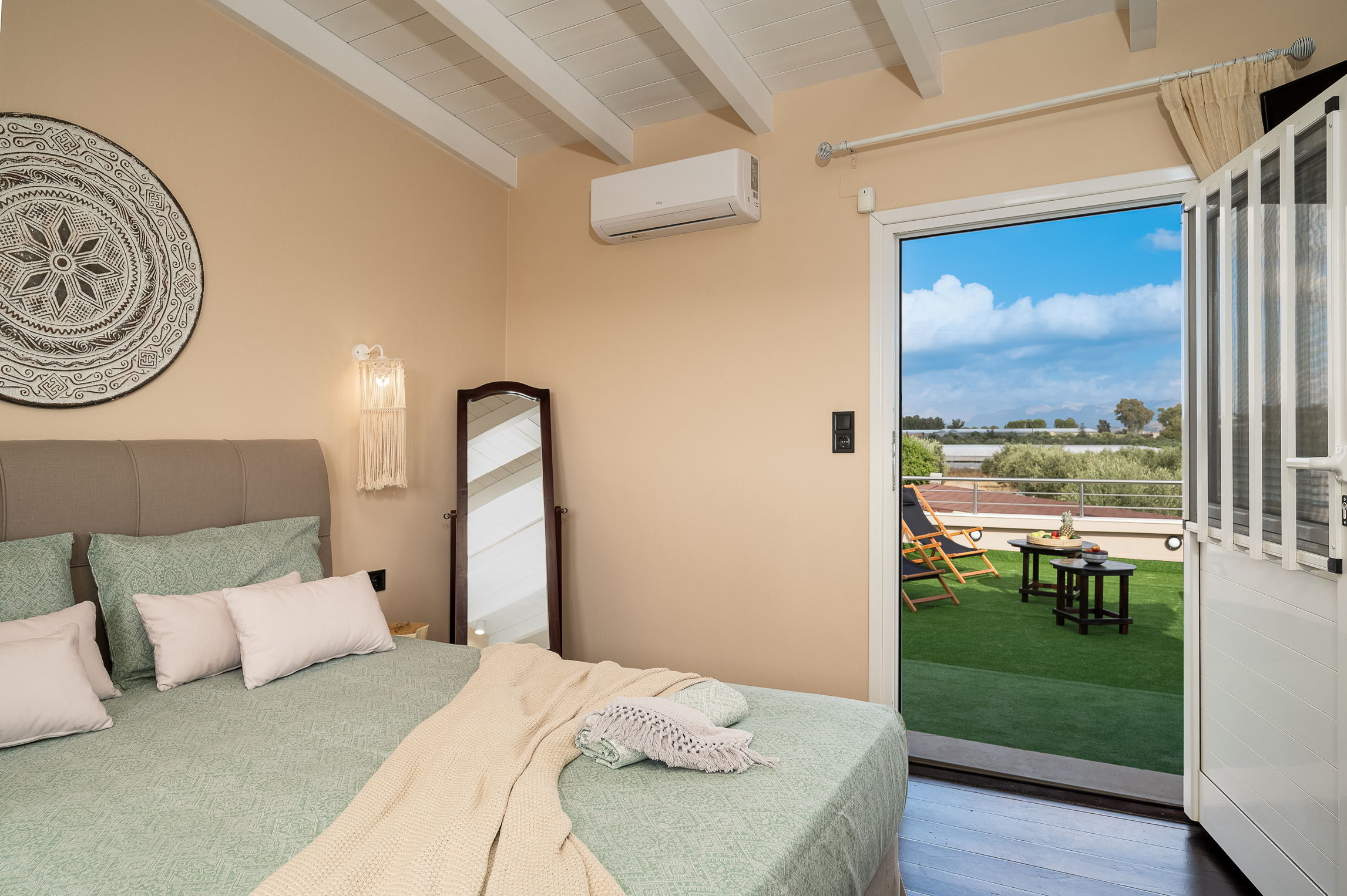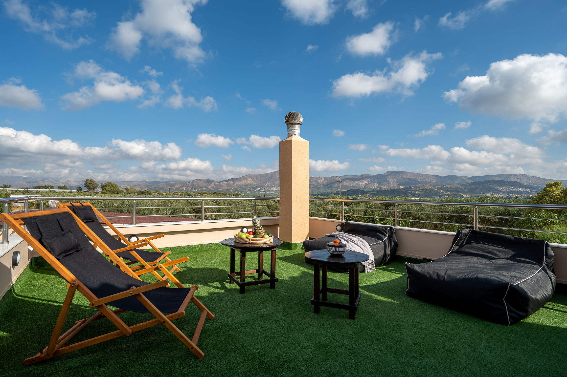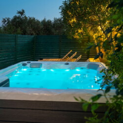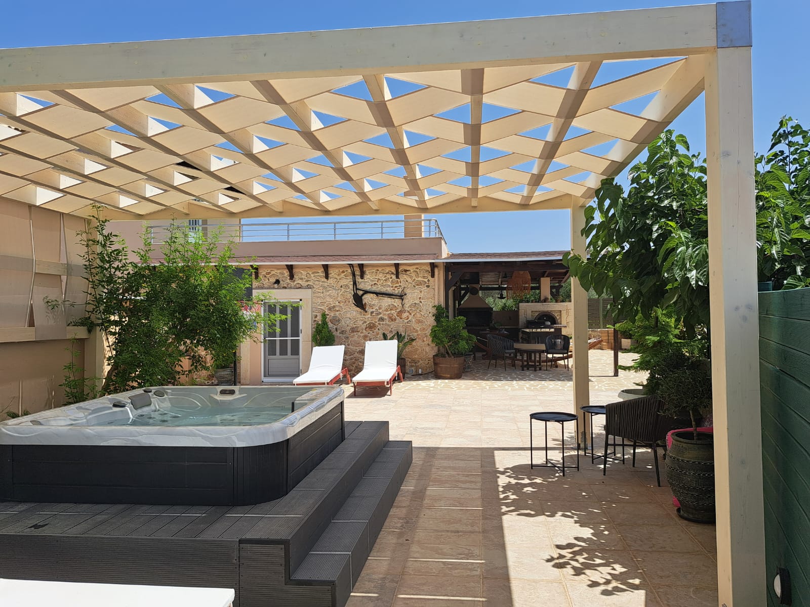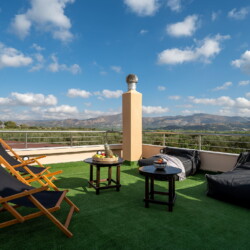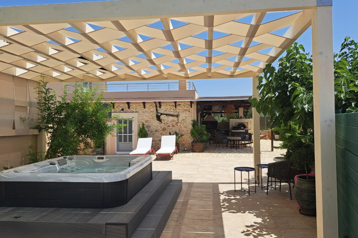 The true highlight of Chrisi is the outdoor living. Enjoy the stunning mountain views from the upper balcony—an ideal spot to sip your morning coffee or watch the sunset. Downstairs, the spacious patio invites you to relax with a BBQ, hammock, sun loungers, outdoor shower, and a large Jacuzzi for ultimate relaxation.