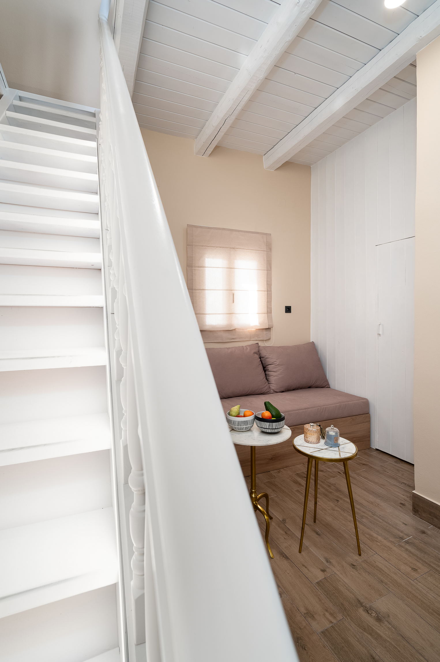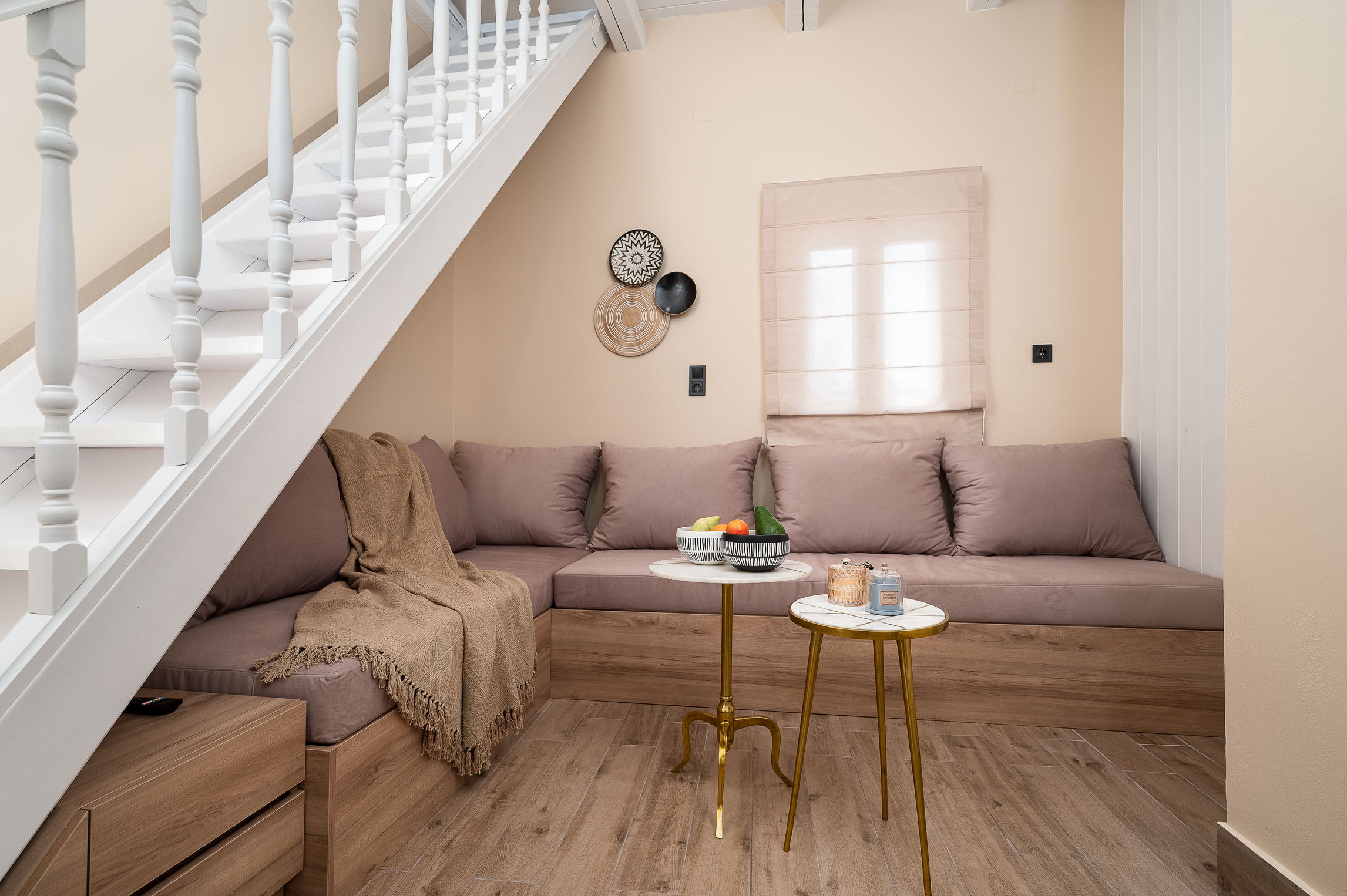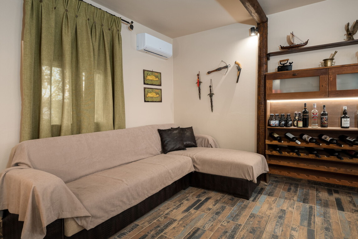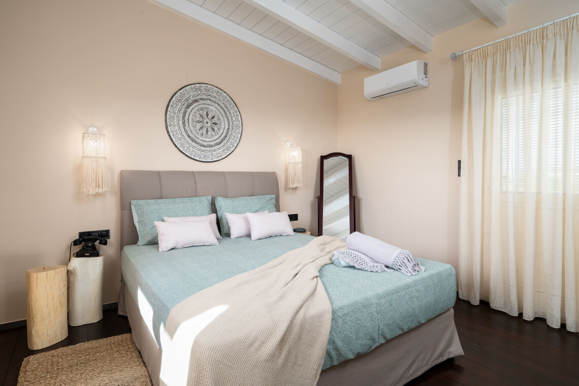 Upstairs, the master bedroom features a comfortable double bed and plenty of natural light. A separate entrance on the ground floor leads to the traditional dining room, complete with a large table, authentic Cretan decor, and a second lounge area with a comfortable couch—perfect for an afternoon siesta.