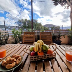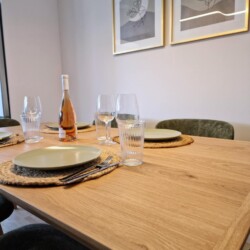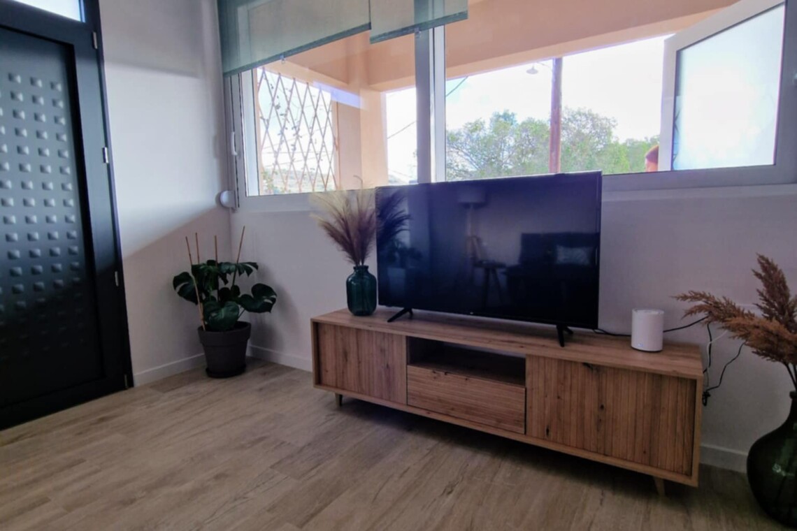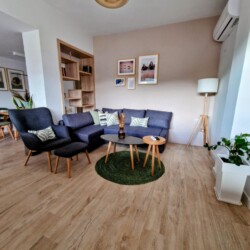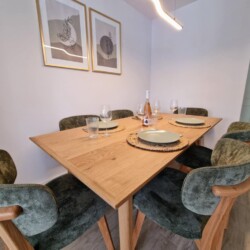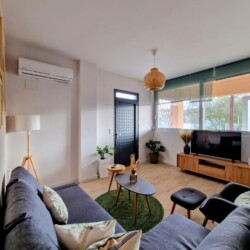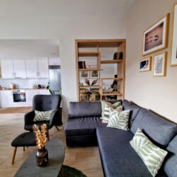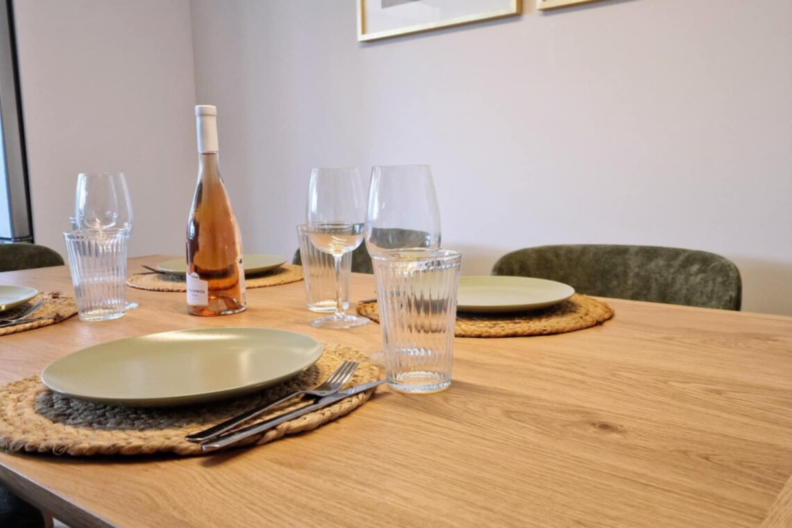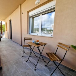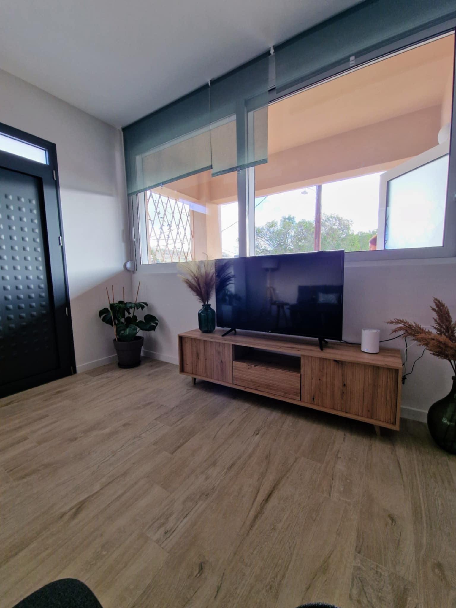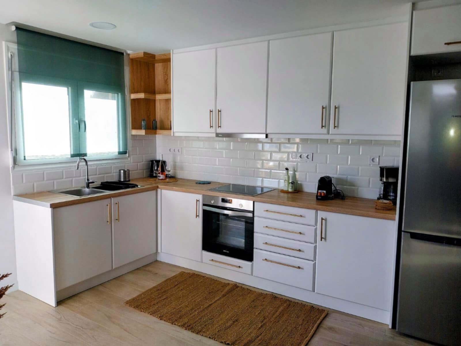 Welcome to this bright and cozy space! As you enter, you’ll find an open-plan layout with a fully equipped kitchen on the left, which leads directly to the main balcony. Here, you’ll find an outdoor dining area with a table and four chairs, perfect for enjoying meals outside. On the right, there’s a stylish dining area that leads to a hallway.