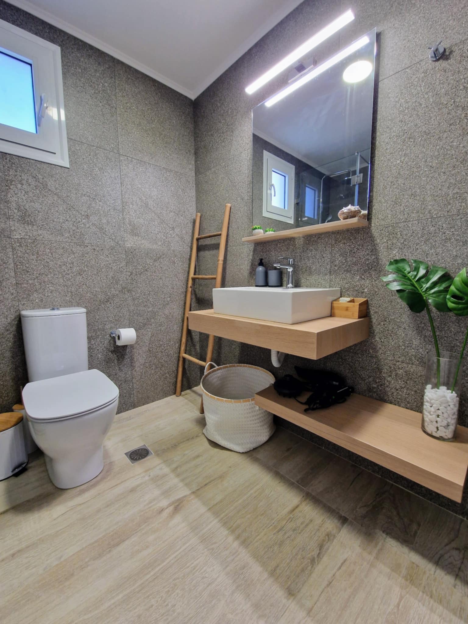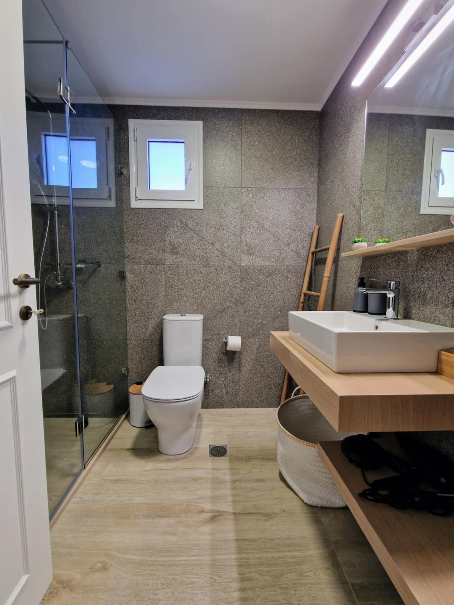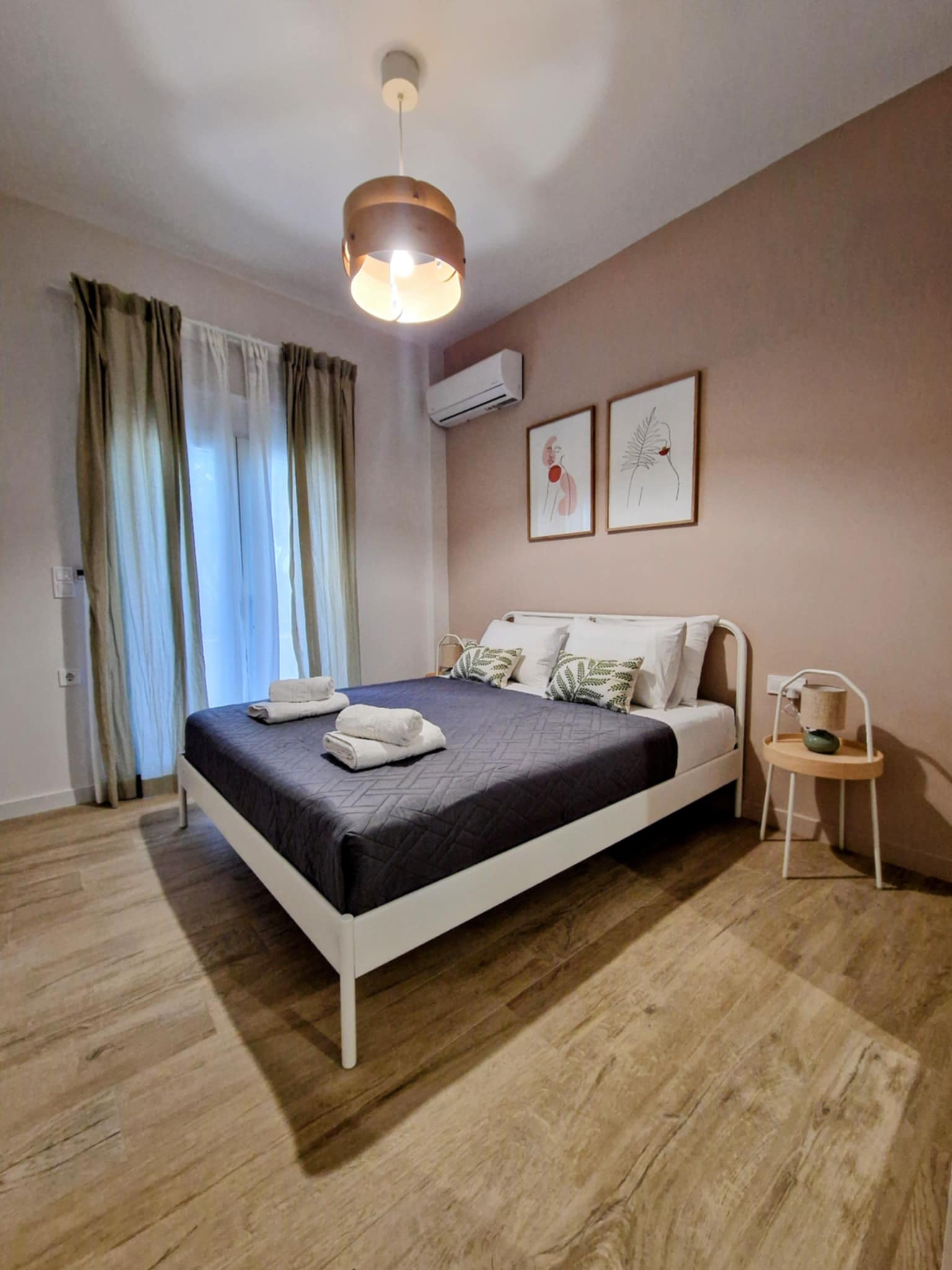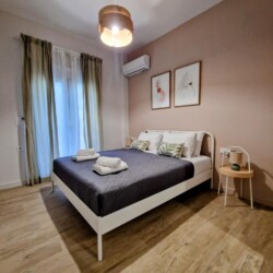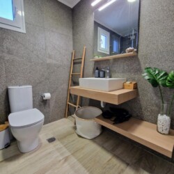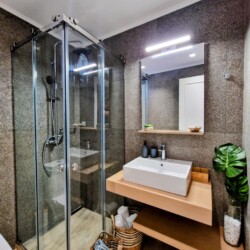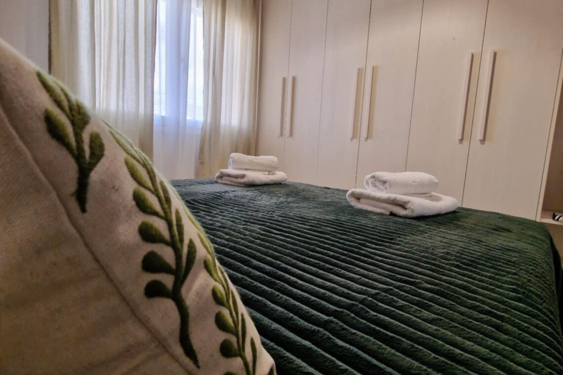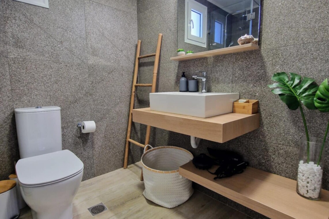 The hallway takes you to two comfortable bedrooms. The first bedroom is to the right, and the main bathroom is straight ahead. To the left, you’ll find the second bedroom, which includes an en-suite bathroom and a private balcony. For added convenience, there’s a washing machine located in the hallway.