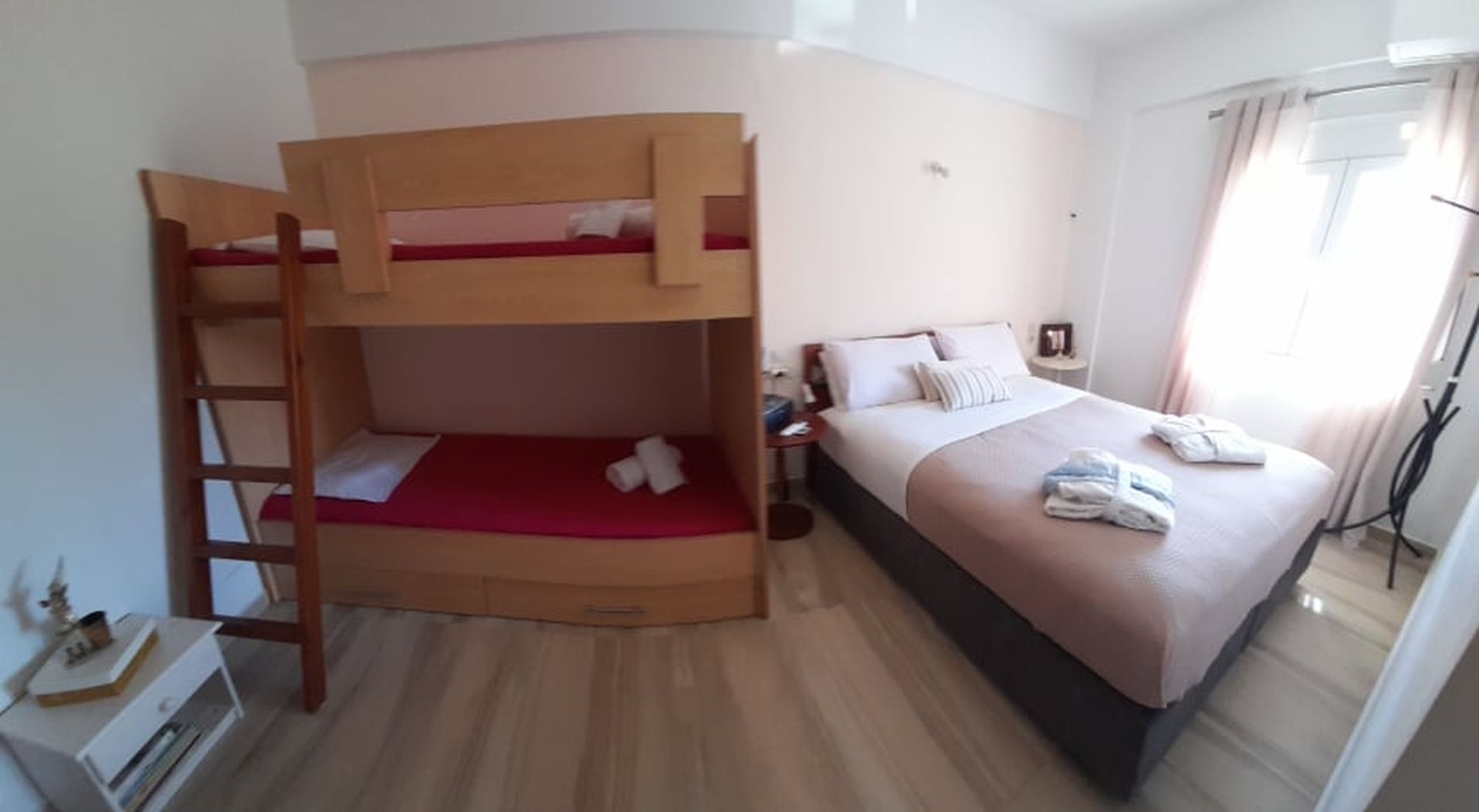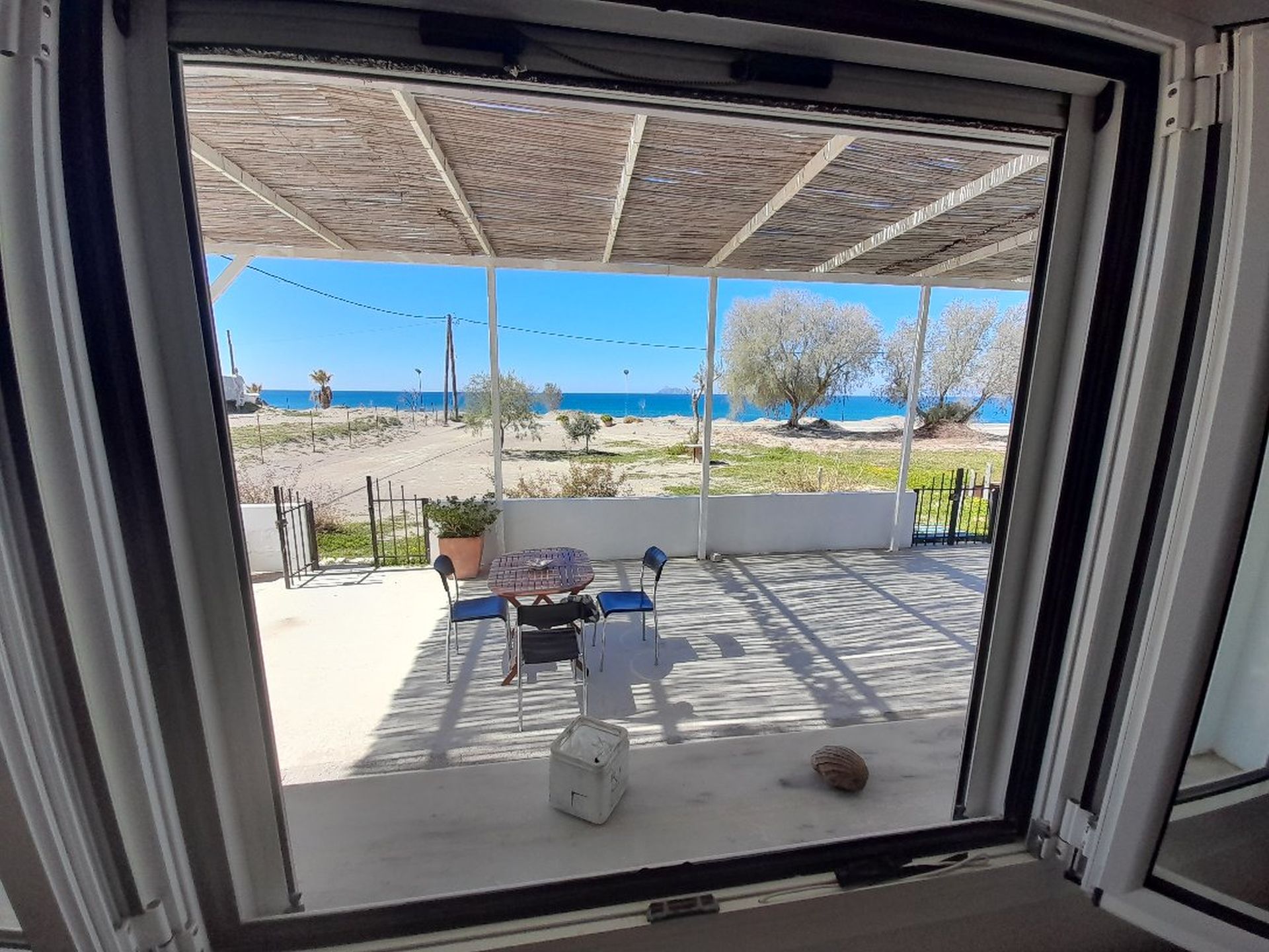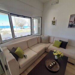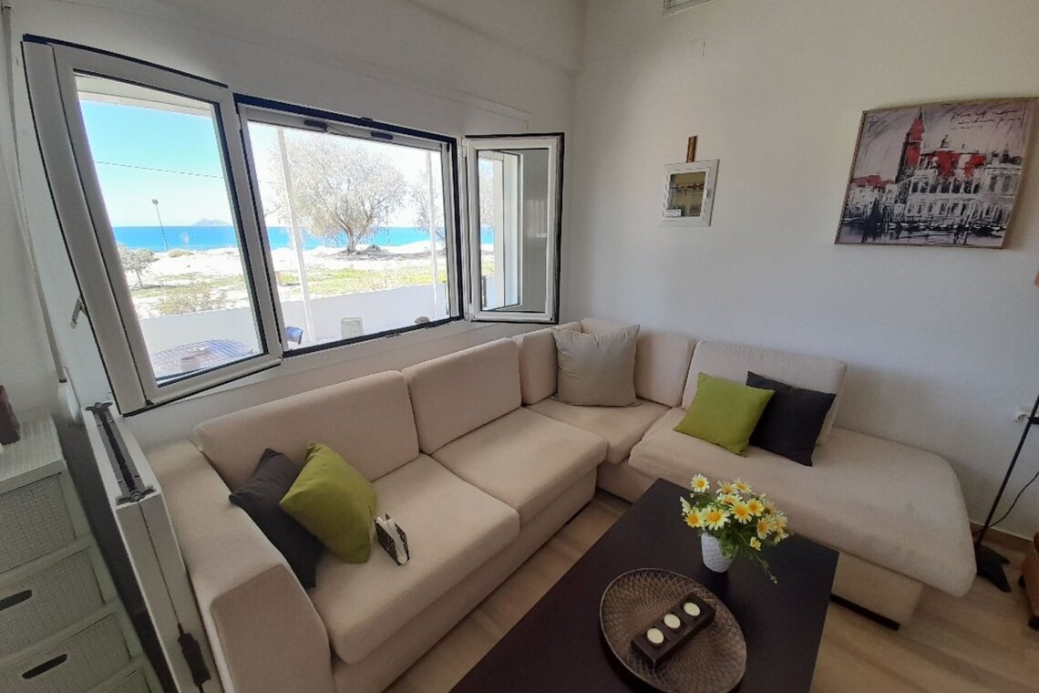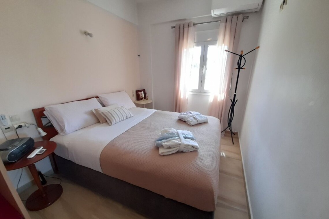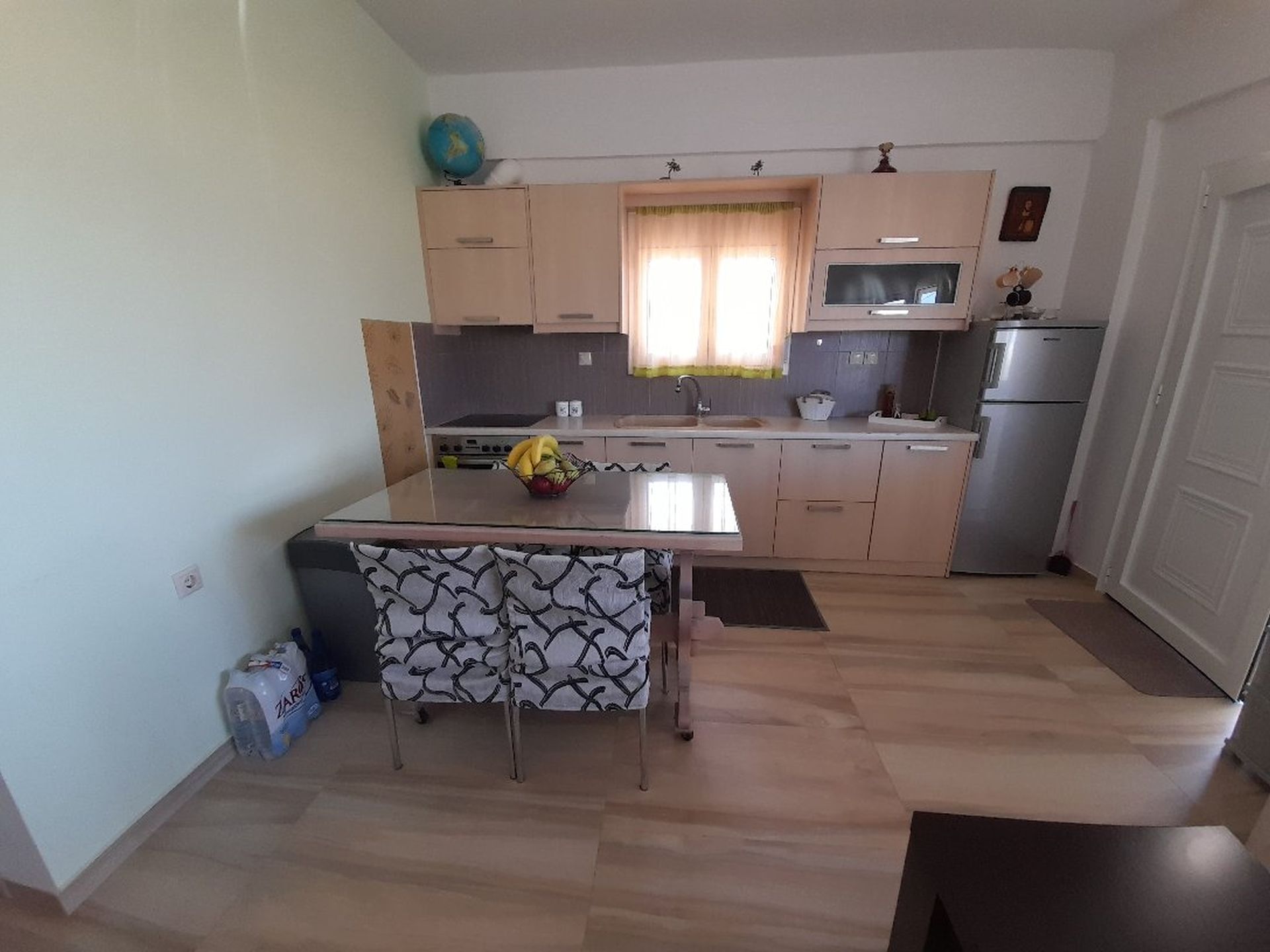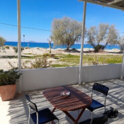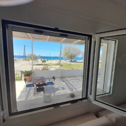 This charming studio apartment is perfectly situated right on the coast in Neo Kalamaki, offering breathtaking, unobstructed sea views. Nestled along Kalamaki’s main coastal road, it provides easy access to the beach, just a short 30-meter stroll away. Whether you’re looking for a relaxing getaway or an adventure-filled holiday, this location offers the best of both worlds. Step inside to find a bright and airy open-plan living space, tastefully furnished for your comfort. To the right, the fully equipped kitchen-diner area allows you to prepare meals with ease. Towards the back, the bedroom features a comfortable double bed and a bunk bed, making it ideal for families or small groups of up to 4 guests. The bedroom is air-conditioned, while the living area is kept cool with a ceiling fan. The apartment also includes a modern bathroom with a shower. For added convenience, the building provides excellent WiFi coverage throughout, ensuring you stay connected. All windows are fitted with fly screens, and there is ample free parking available on the premises, located at the side of the building. The highlight of this beachfront retreat is the delightful patio in front of the building—an inviting outdoor space where you can start your morning with breakfast by the sea or unwind in the evening with a drink while soaking in the stunning sunset over Paximadia islands. Book your stay at Paximadia Beachfront Apartment in Neo Kalamaki and experience the perfect coastal escape!Details