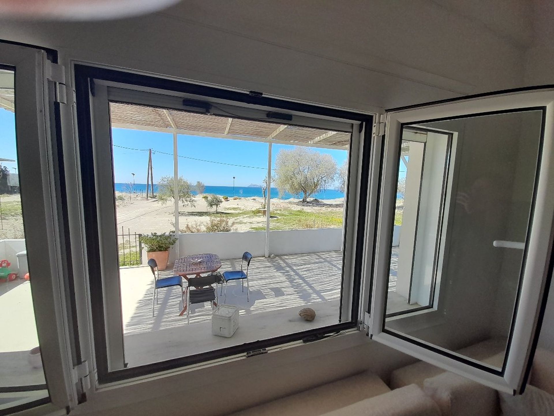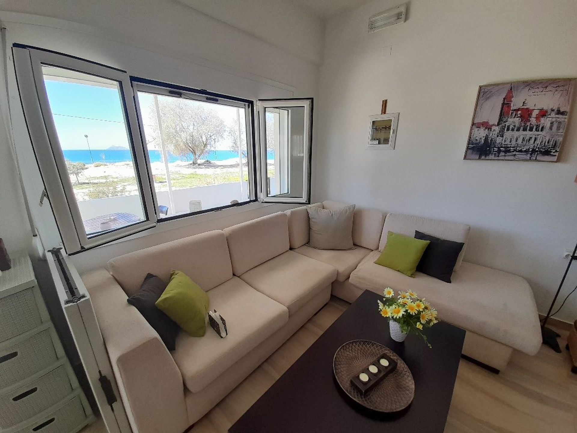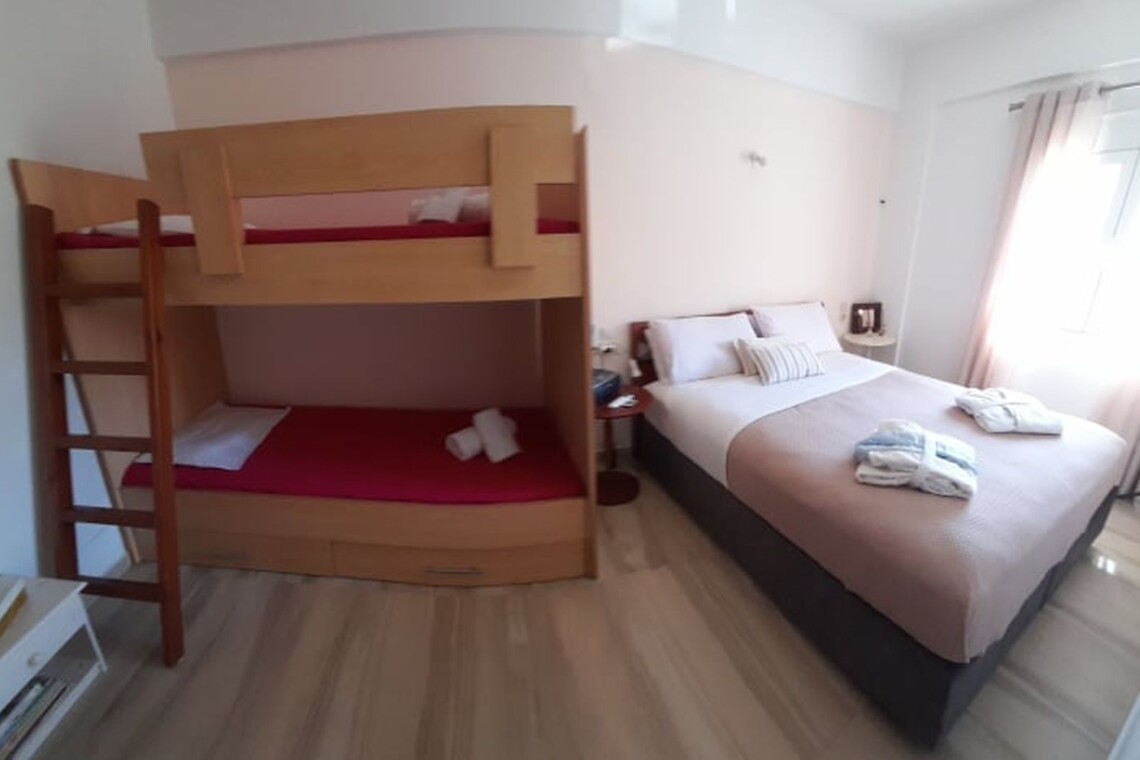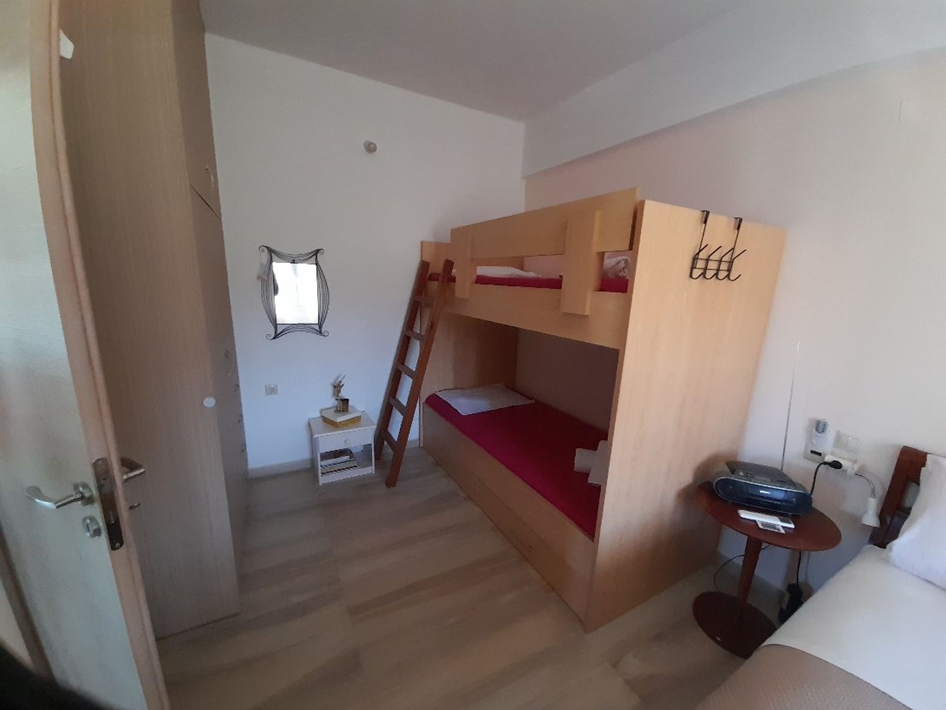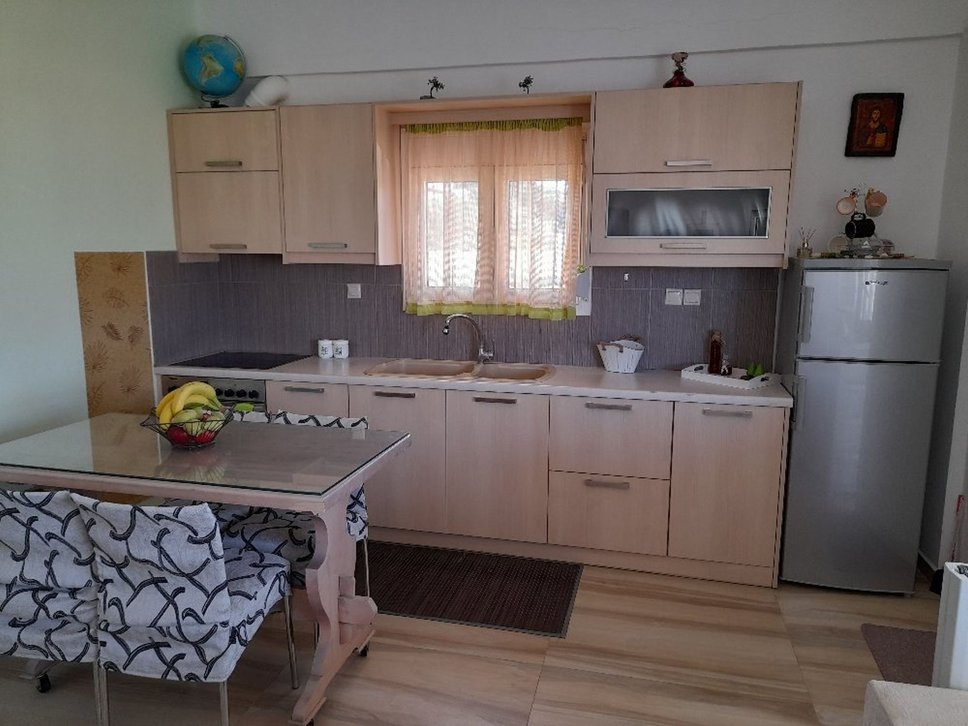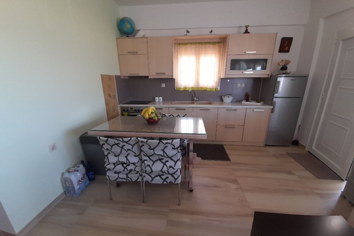 This charming studio apartment is perfectly situated right on the coast in Neo Kalamaki, offering breathtaking, unobstructed sea views. Nestled along Kalamaki’s main coastal road, it provides easy access to the beach, just a short 30-meter stroll away. Whether you’re looking for a relaxing getaway or an adventure-filled holiday, this location offers the best of both worlds. Step inside to find a bright and airy open-plan living space, tastefully furnished for your comfort. To the right, the fully equipped kitchen-diner area allows you to prepare meals with ease. Towards the back, the bedroom features a comfortable double bed and a bunk bed, making it ideal for families or small groups of up to 4 guests. The bedroom is air-conditioned, while the living area is kept cool with a ceiling fan. The apartment also includes a modern bathroom with a shower. For added convenience, the building provides excellent WiFi coverage throughout, ensuring you stay connected. All windows are fitted with fly screens, and there is ample free parking available on the premises, located at the side of the building. The highlight of this beachfront retreat is the delightful patio in front of the building—an inviting outdoor space where you can start your morning with breakfast by the sea or unwind in the evening with a drink while soaking in the stunning sunset over Paximadia islands. Book your stay at Paximadia Beachfront Apartment in Neo Kalamaki and experience the perfect coastal escape!Details