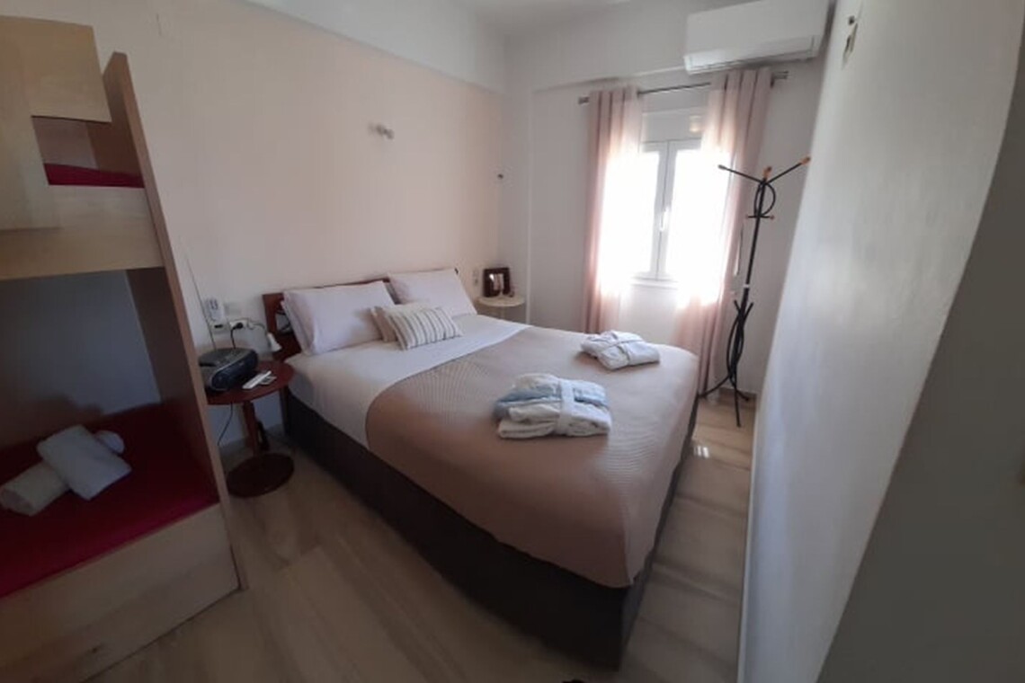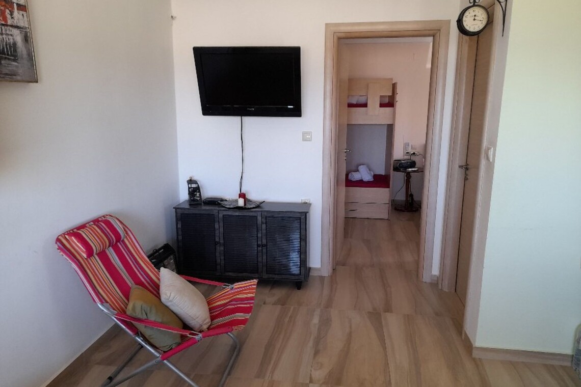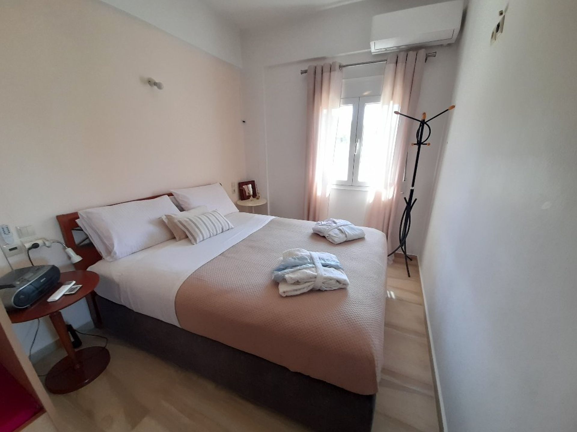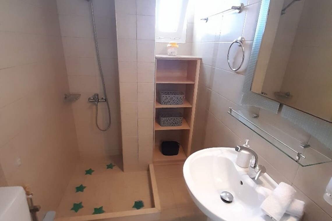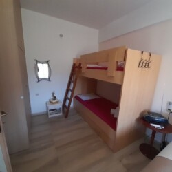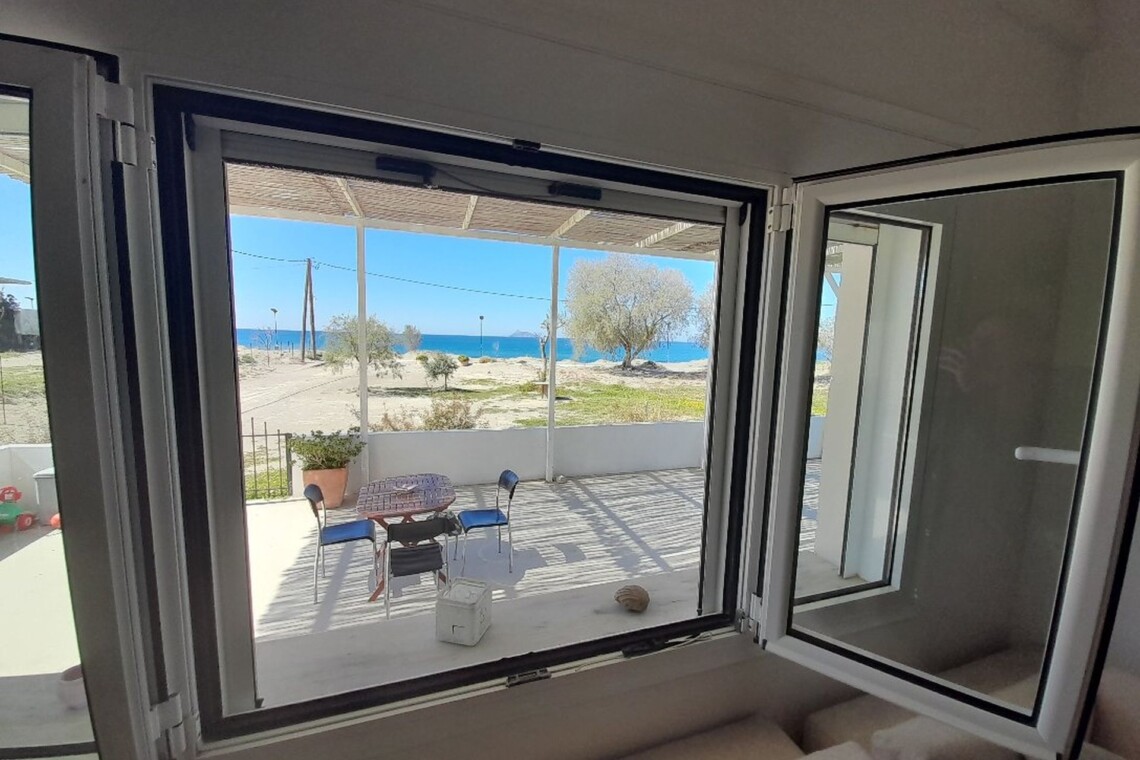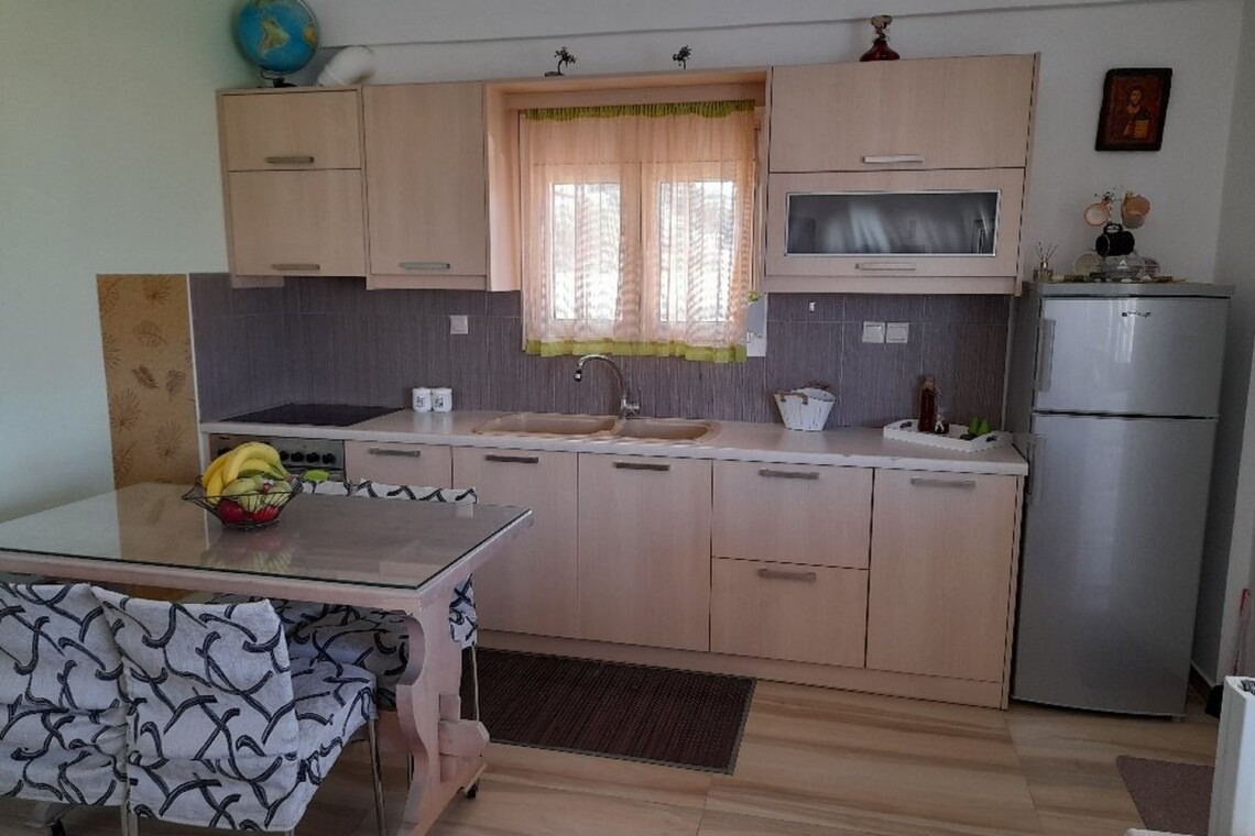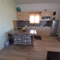This charming studio apartment is perfectly situated right on the coast in Neo Kalamaki, offering breathtaking, unobstructed sea views. Nestled along Kalamaki’s main coastal road, it provides easy access to the beach, just a short 30-meter stroll away. Whether you’re looking for a relaxing getaway or an adventure-filled holiday, this location offers the best of both worlds. Step inside to find a bright and airy open-plan living space, tastefully furnished for your comfort. To the right, the fully equipped kitchen-diner area allows you to prepare meals with ease. Towards the back, the bedroom features a comfortable double bed and a bunk bed, making it ideal for families or small groups of up to 4 guests. The bedroom is air-conditioned, while the living area is kept cool with a ceiling fan. The apartment also includes a modern bathroom with a shower. For added convenience, the building provides excellent WiFi coverage throughout, ensuring you stay connected. All windows are fitted with fly screens, and there is ample free parking available on the premises, located at the side of the building. The highlight of this beachfront retreat is the delightful patio in front of the building—an inviting outdoor space where you can start your morning with breakfast by the sea or unwind in the evening with a drink while soaking in the stunning sunset over Paximadia islands. Book your stay at Paximadia Beachfront Apartment in Neo Kalamaki and experience the perfect coastal escape!Details