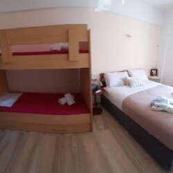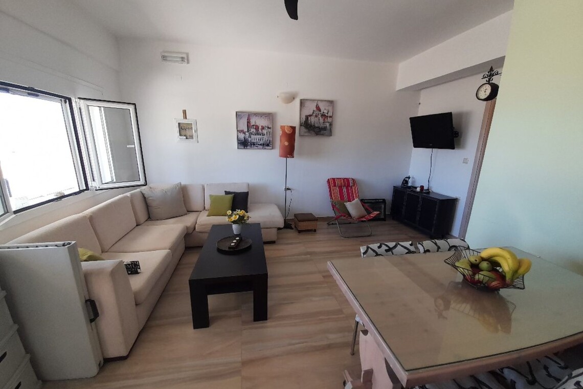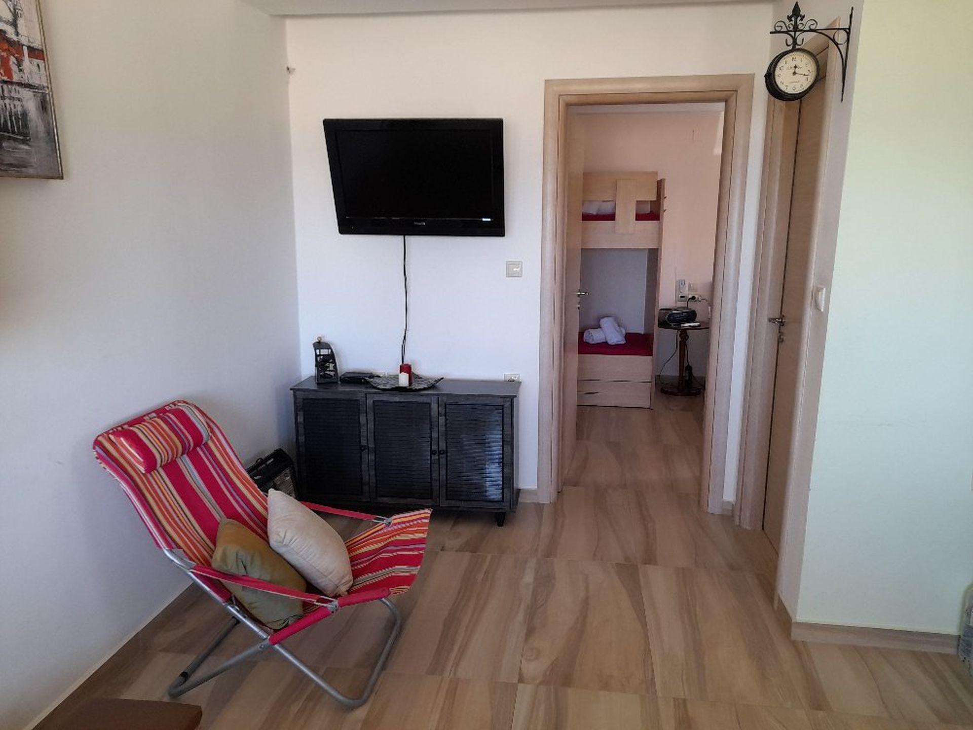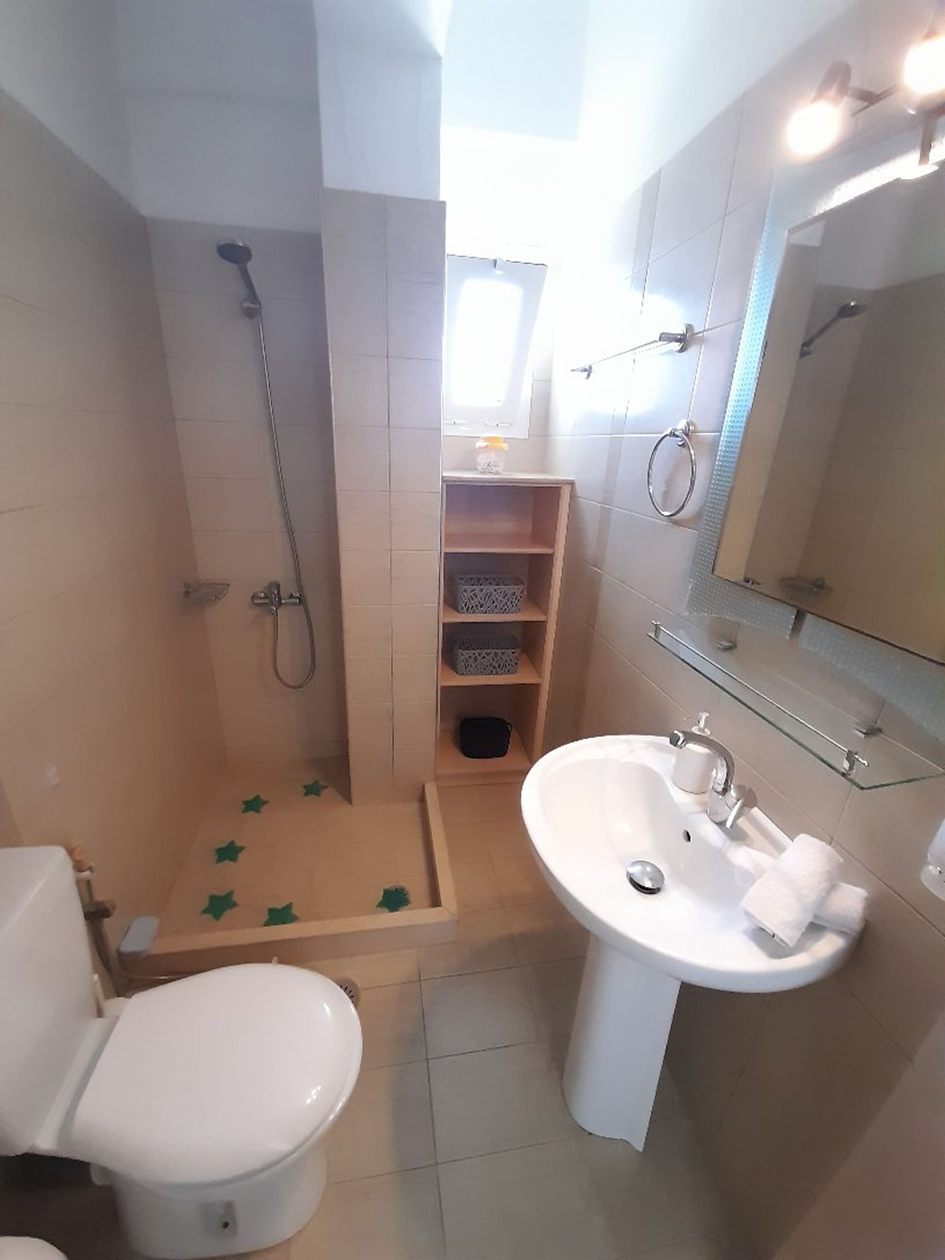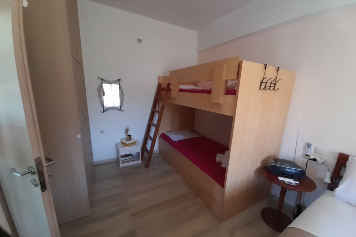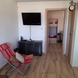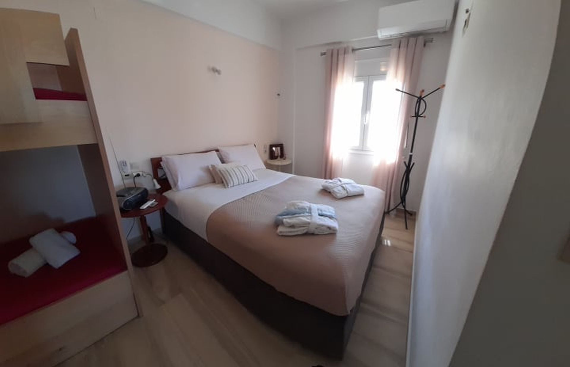 This charming studio apartment is perfectly situated right on the coast in Neo Kalamaki, offering breathtaking, unobstructed sea views. Nestled along Kalamaki’s main coastal road, it provides easy access to the beach, just a short 30-meter stroll away. Whether you’re looking for a relaxing getaway or an adventure-filled holiday, this location offers the best of both worlds. Step inside to find a bright and airy open-plan living space, tastefully furnished for your comfort. To the right, the fully equipped kitchen-diner area allows you to prepare meals with ease. Towards the back, the bedroom features a comfortable double bed and a bunk bed, making it ideal for families or small groups of up to 4 guests. The bedroom is air-conditioned, while the living area is kept cool with a ceiling fan. The apartment also includes a modern bathroom with a shower. For added convenience, the building provides excellent WiFi coverage throughout, ensuring you stay connected. All windows are fitted with fly screens, and there is ample free parking available on the premises, located at the side of the building. The highlight of this beachfront retreat is the delightful patio in front of the building—an inviting outdoor space where you can start your morning with breakfast by the sea or unwind in the evening with a drink while soaking in the stunning sunset over Paximadia islands. Book your stay at Paximadia Beachfront Apartment in Neo Kalamaki and experience the perfect coastal escape!Details