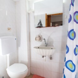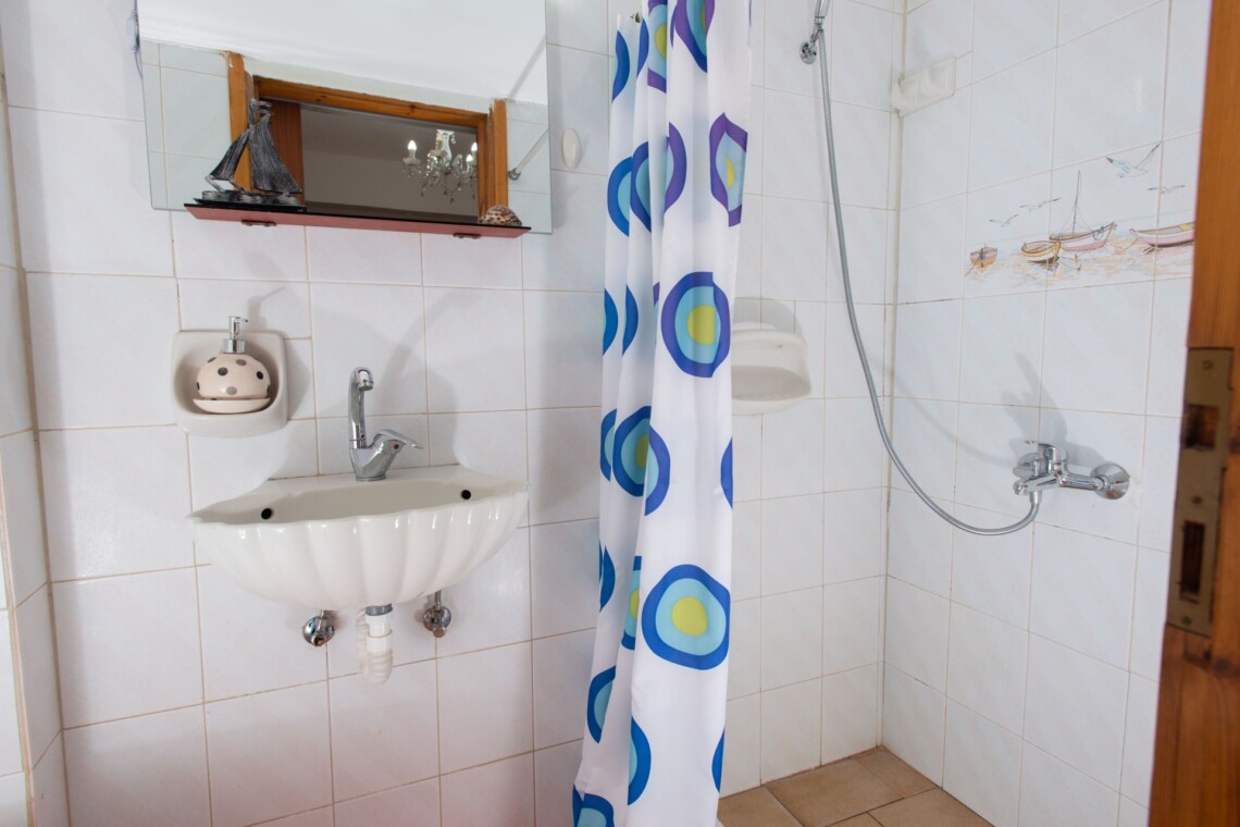 The bedroom features a comfortable double bed with stunning sea views, a spacious wardrobe, flat-screen TV, and a brand-new air conditioning unit to keep you cool and relaxed all day and night. Whether you’re watching a movie or drifting off to the sound of the waves, rest comes naturally here.