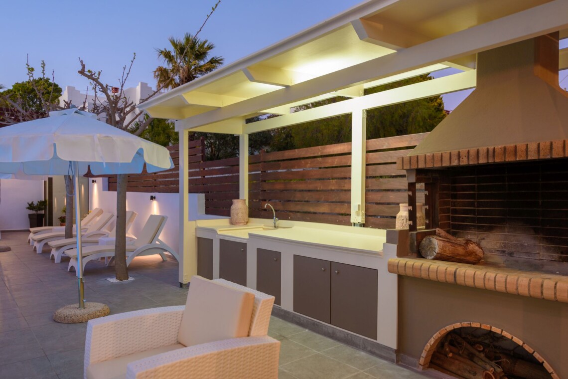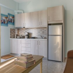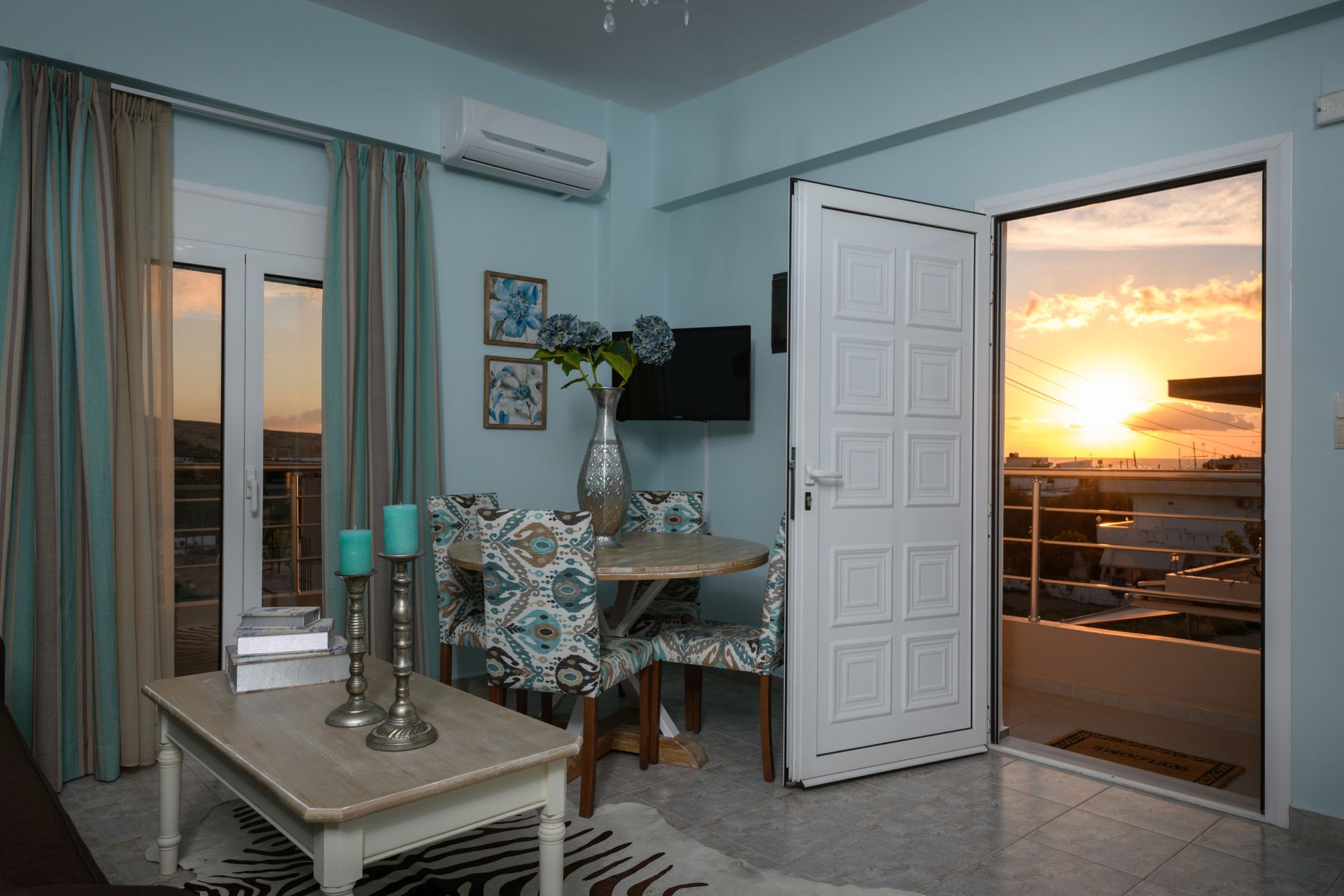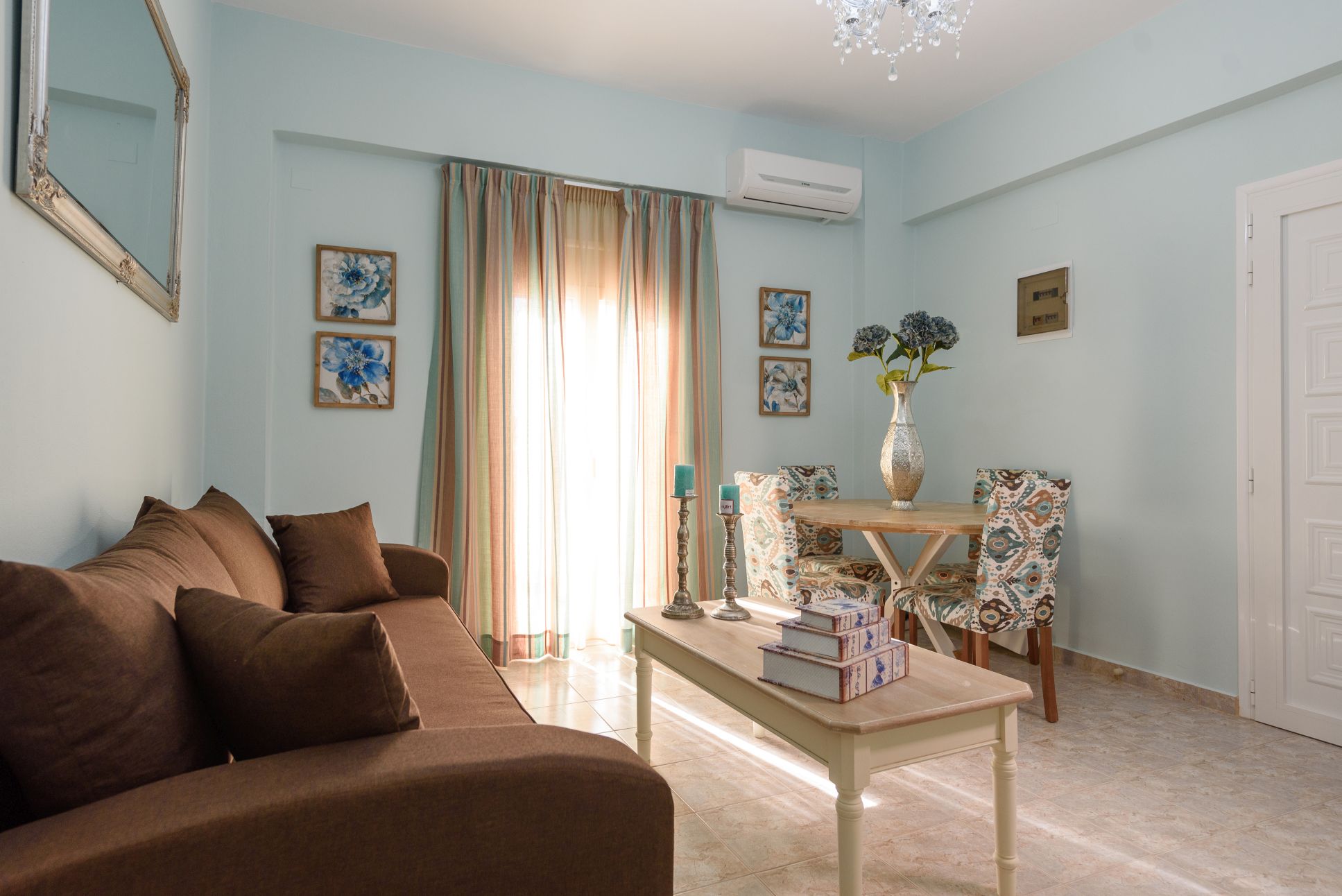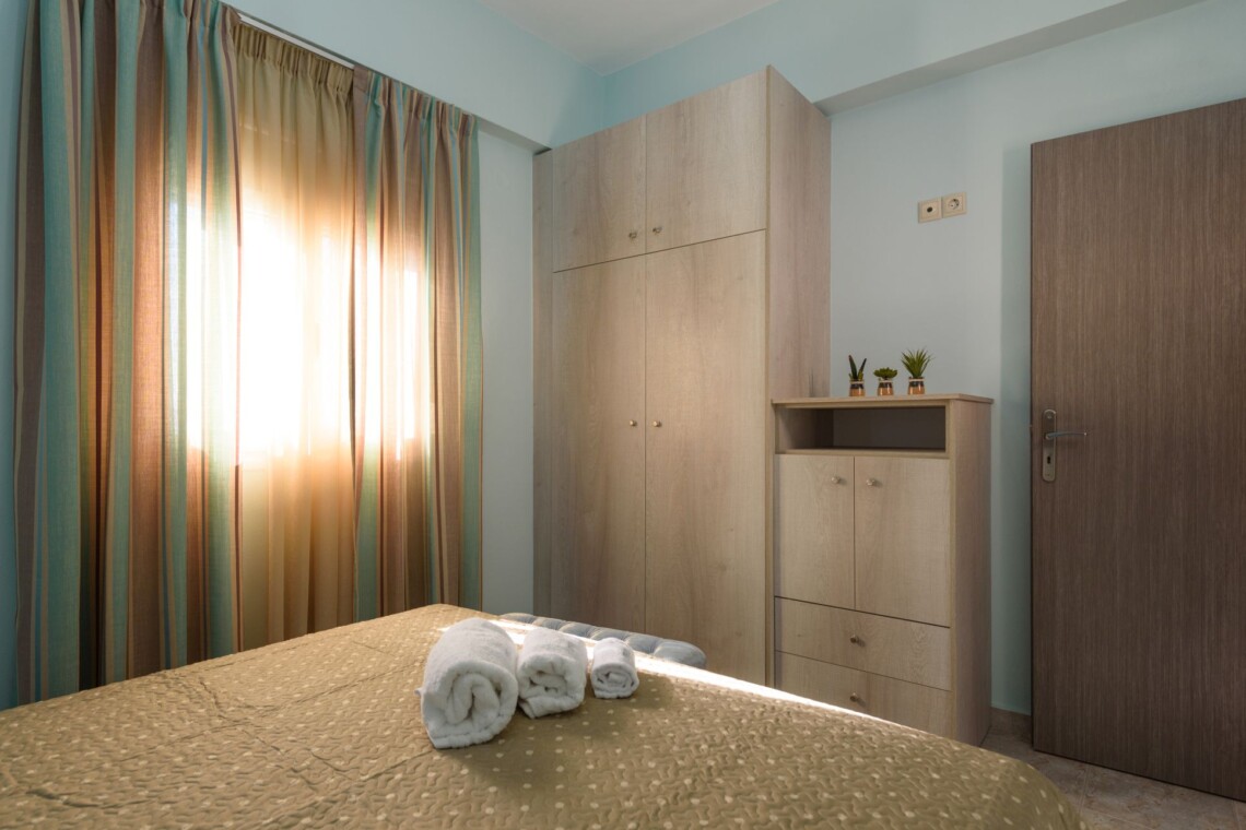 They are all beautifully decorated with handmade furniture, crafted in the Cretan traditional style mixed with modern elements. All apartments come with a fully equipped kitchen with microwave, refrigerator, coffee maker as well as necessary kitchen utensils. Each one has his own private bathroom with shower, hair dryer, towels and washing machine. There is Wi-Fi coverage in each apartment. The individually controlled air conditioning and the smart TV are in the living area.