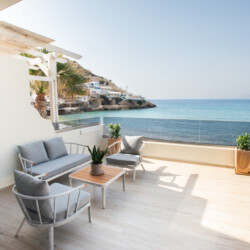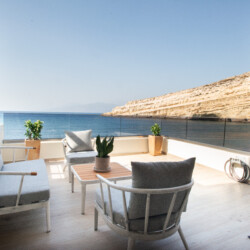Wake up to the sound of the waves in this beautiful beachfront studio in Matala. Perfect for couples or small families, Studio Meltemi offers a stunning sea view from inside and from the private balcony.