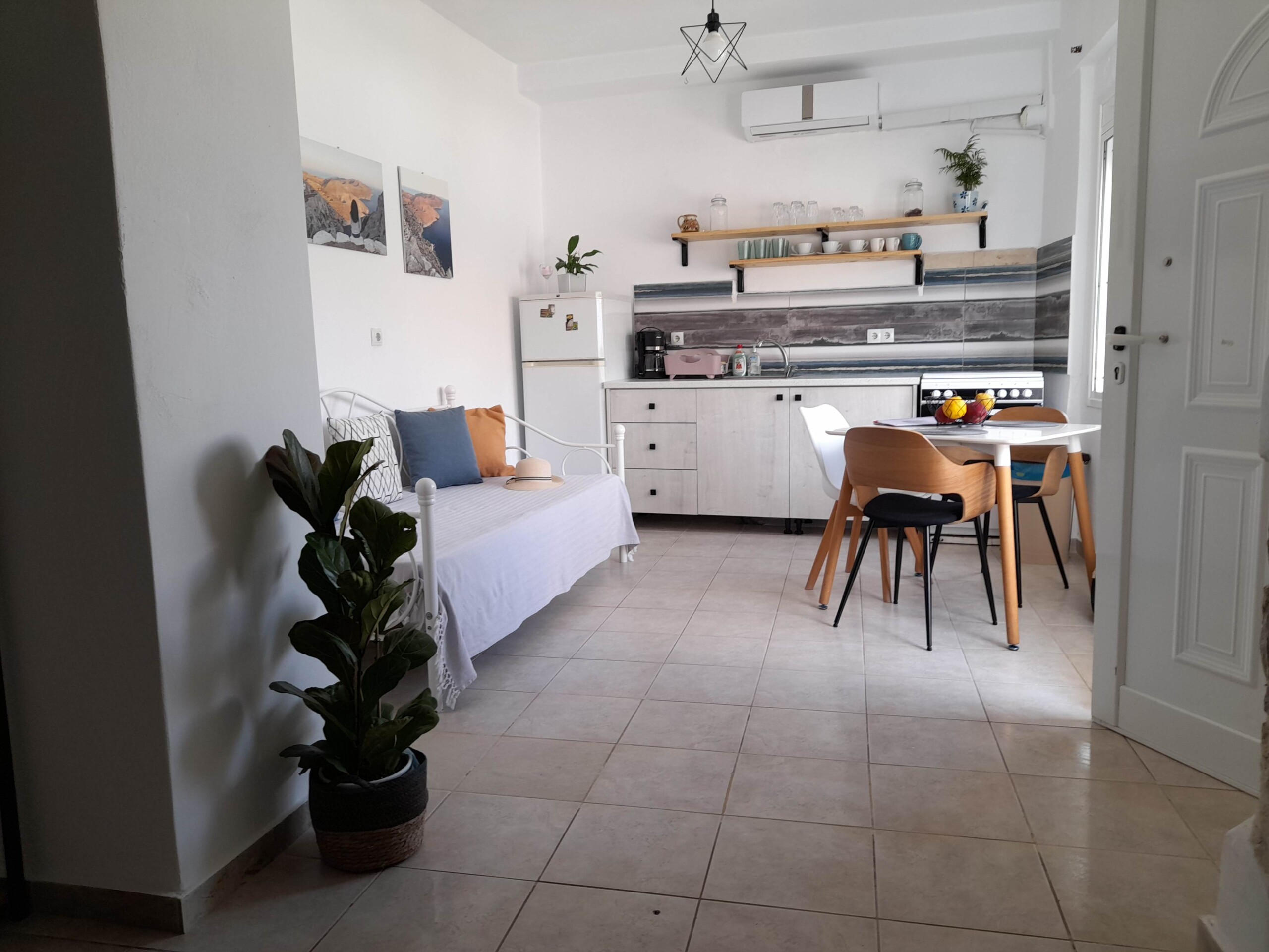 Welcome to Studio Rafaela, a charming and unique retreat in the heart of Matala! This cozy studio blends modern comforts with a cave-style design, offering breathtaking sea views and easy access to the beach, just a short walk away.
