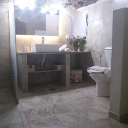 - Modern cave-style bathroom