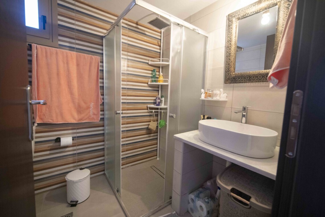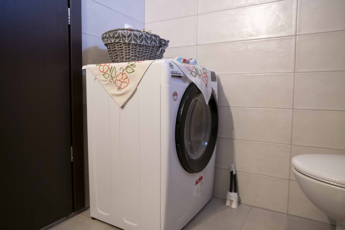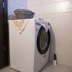 Across from the second bedroom, you’ll find the bathroom, complete with a shower and a washing machine, catering to all your needs during your stay.
