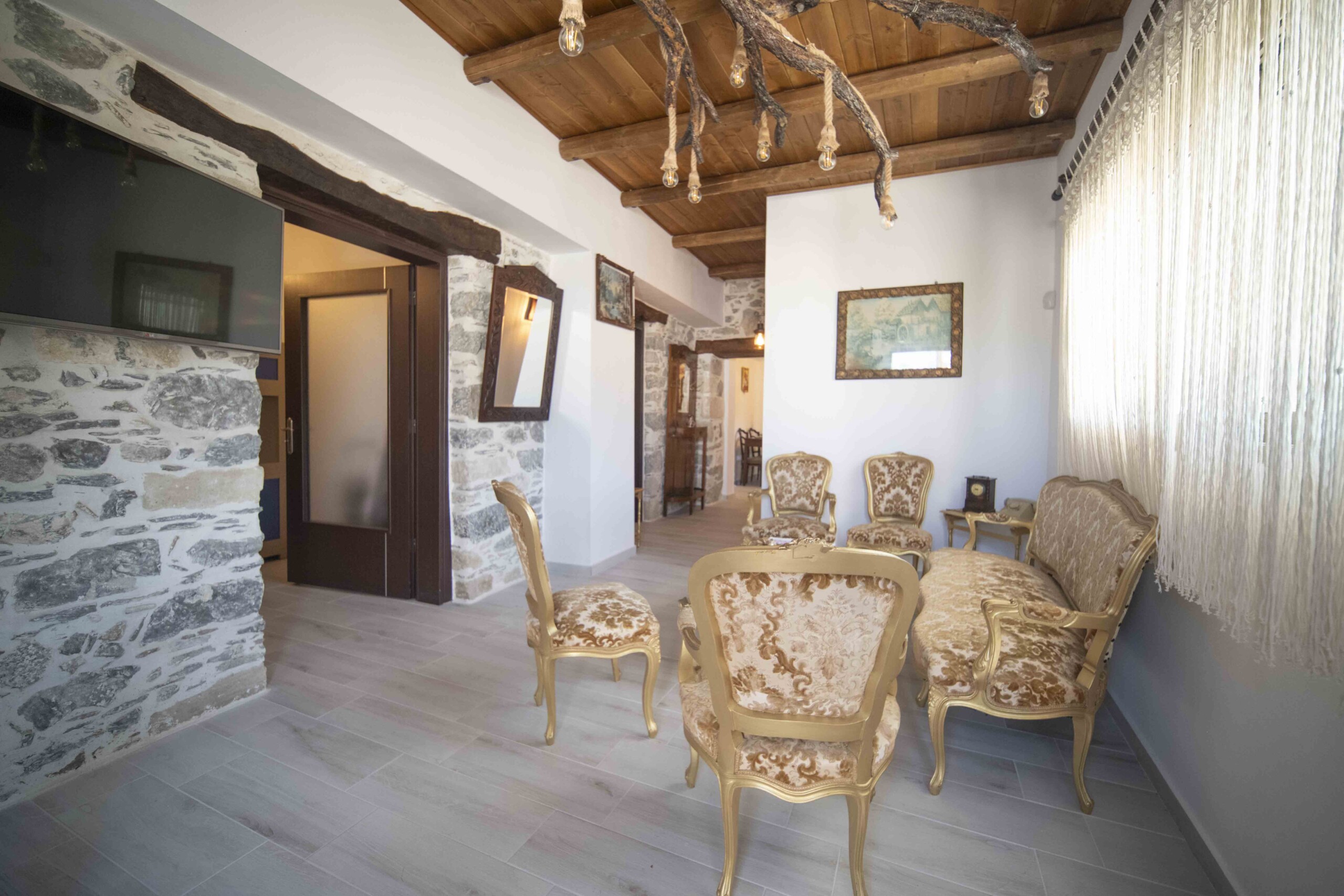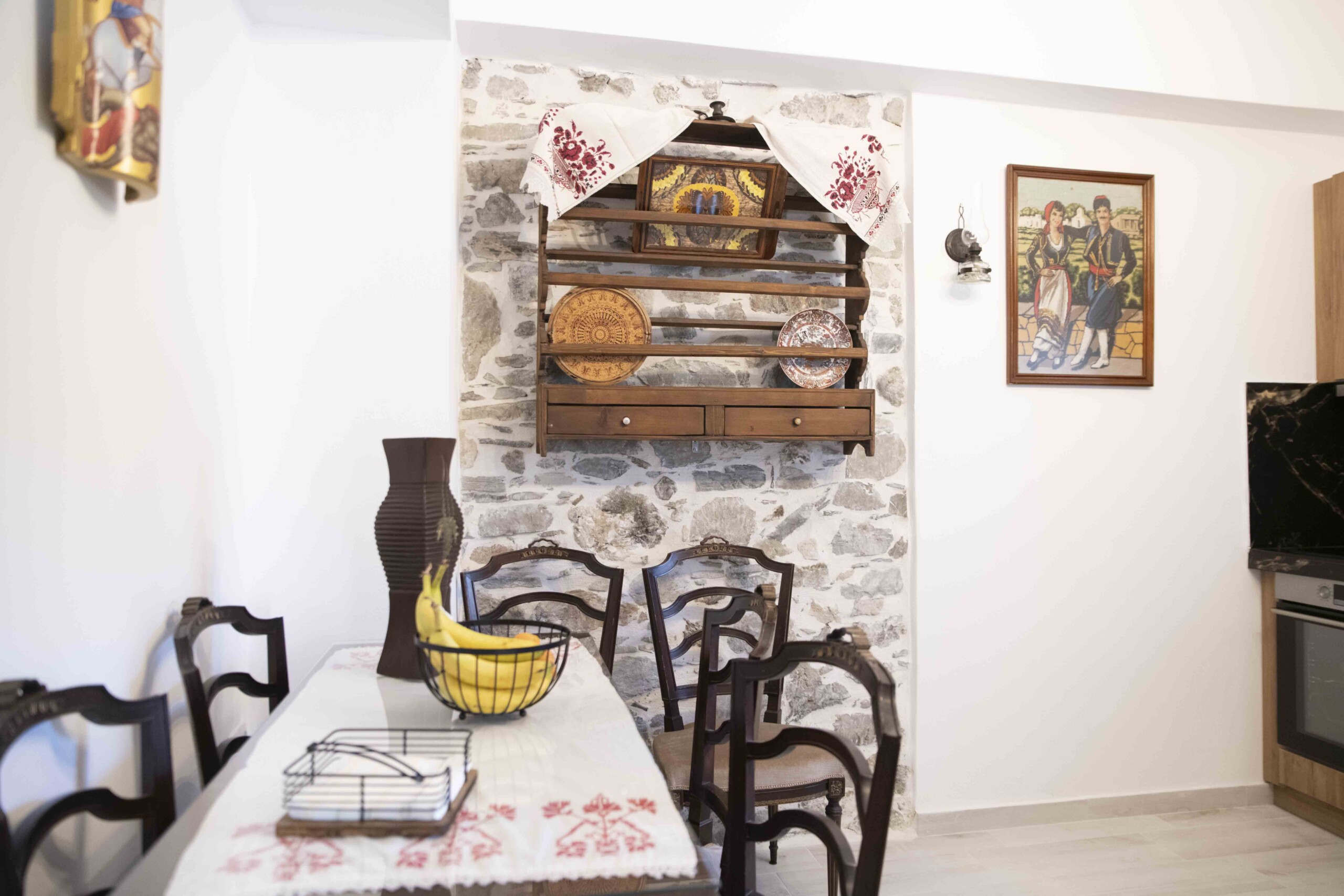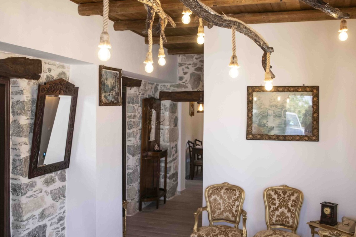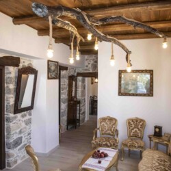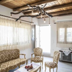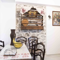 In a traditional village in South Crete, this charming stone house seamlessly blends authentic Cretan architecture with modern comforts. As you step inside, you are greeted by a welcoming seating area, adorned with stylish Cretan-Greek furnishings that exude warmth and hospitality.