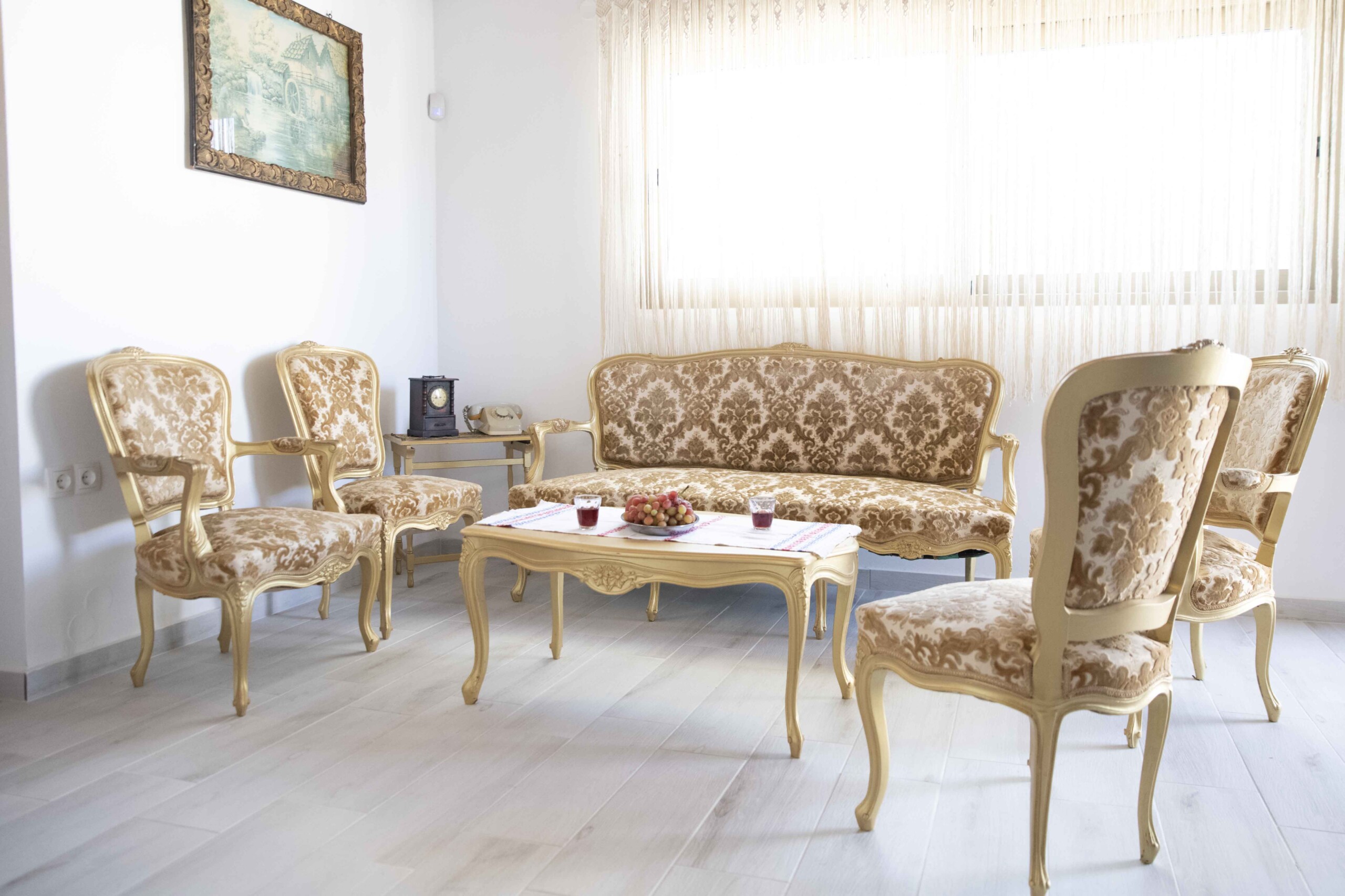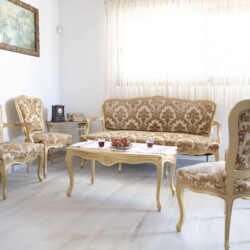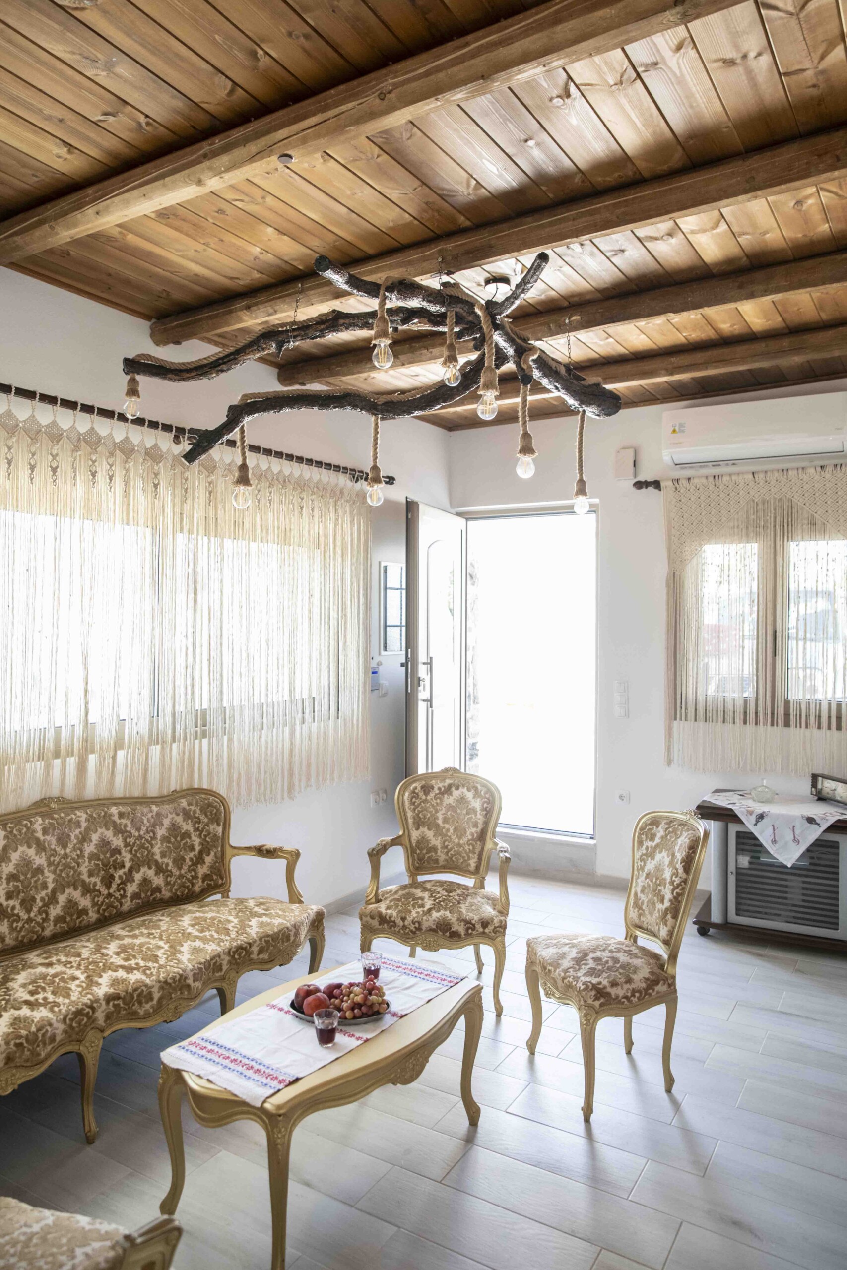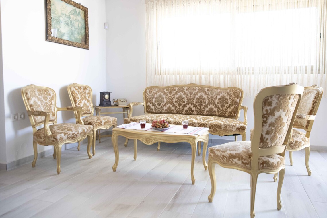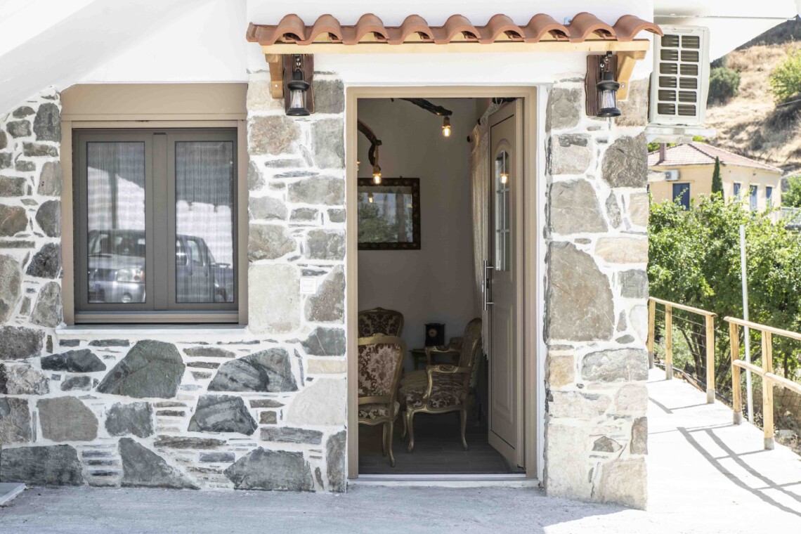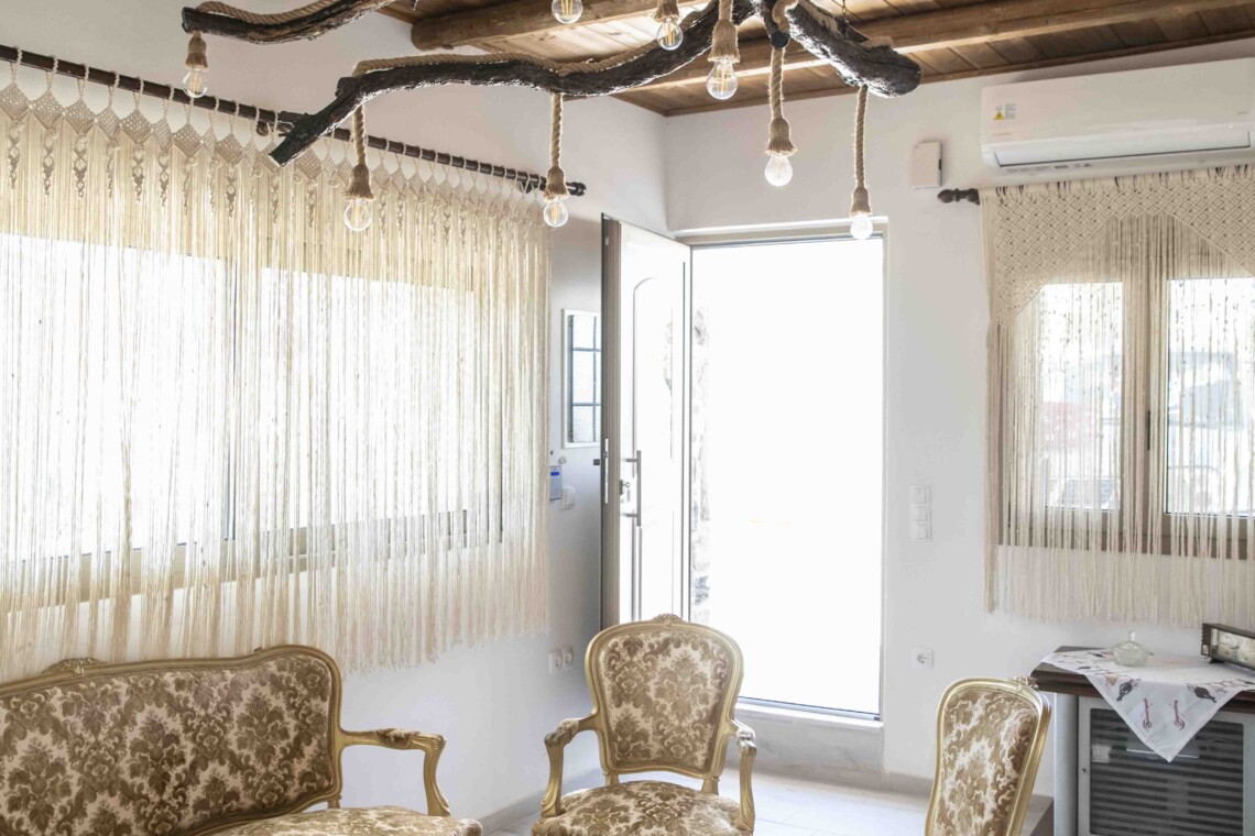 The living area, located at the entrance, is a delightful space furnished with lovely Cretan-Greek-styled furniture, creating an inviting atmosphere for you to unwind. Here, you can enjoy entertainment on the TV equipped with ASTRA.