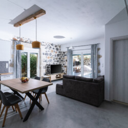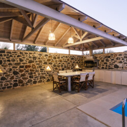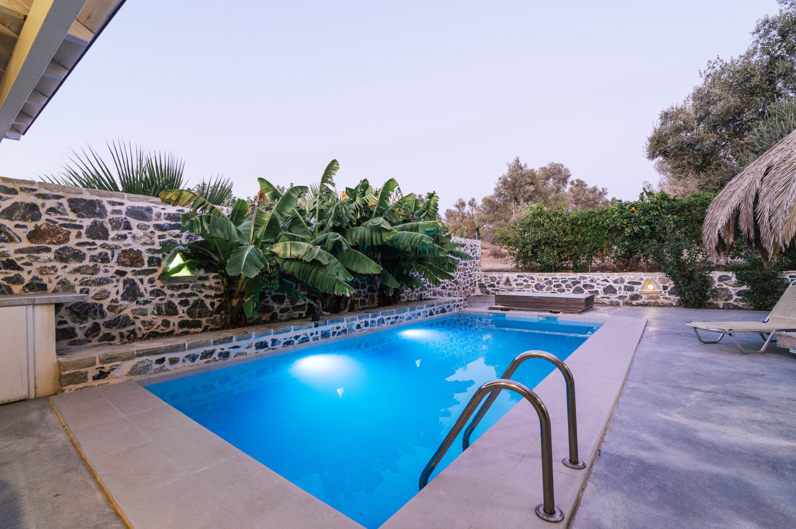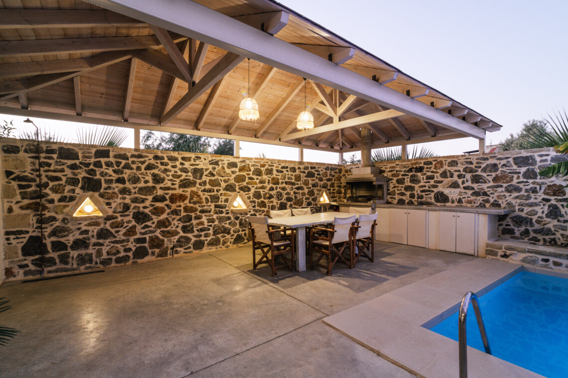 Outside, your private oasis awaits. Take a refreshing dip in the swimming pool, bask in the sun on comfortable loungers, or enjoy a BBQ under the covered dining area. With its serene, secluded setting, Villa Evgenia – Serenity offers the perfect escape from the hustle and bustle, ideal for couples, families, or friends seeking peace and privacy.