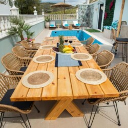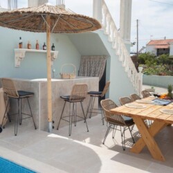 Stylish 4BR villa with a private heated pool, outdoor bar & BBQ, just 300m from the sandy Kalamaki-Komos beach. Perfect for families & groups seeking comfort, elegance & sun-soaked serenity. Welcome to Villa Virginia, a chic 4-bedroom, 2-bathroom retreat in the heart of South Crete—just a short stroll from the golden sands of Kalamaki-Komos Beach. Designed for relaxation and connection, Villa Virginia features a private heated pool, a cozy outdoor bar and BBQ area, and stylish indoor living spaces that blend comfort with elegance. Whether you’re gathering with family, vacationing with friends, or just soaking up the sun, this villa is the perfect base for your island escape. Inside, you’ll find a fully equipped modern kitchen, a spacious dining area, and a large, inviting living room with a plush sectional and flat-screen TV—ideal for cozy evenings in. 🛏 The villa offers:-